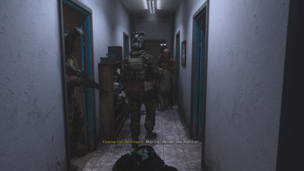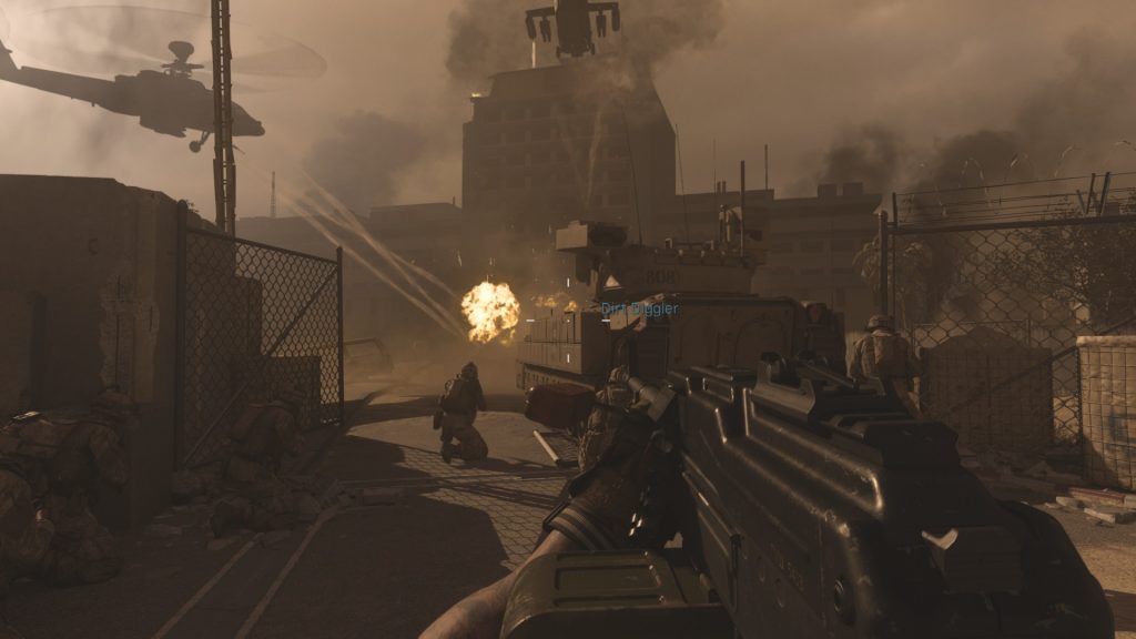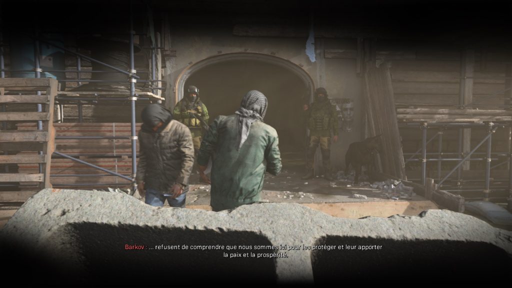 Si sur le papier cela est séduisant, dans l’exécution, cela reste à revoir. N’y allons pas par quatre chemins, si le sujet est intéressant, la vision offerte par les équipes d’Infinity Ward n’est plus d’actualité et donne un goût cheap à l’ensemble de l’histoire. Pour rappel, l’Urzikstan est envahi par la Russie sans véritable raison, mais cela entraîne des soulèvements armés de la population locale. De fait, insister sur le personnage de Farah et donc de son groupe de libérateurs permet à l’équipe de narration de plonger le joueur directement dans un groupe d’insurgés. Un axe intéressant qui permet de souligner un aspect majeur des conflits actuels, le conflit asymétrique. Malheureusement, cet axe est gâché par le genre que la série impose : un réalisme partiel pour favoriser le sentiment d’héroïsme. Alex et Farah agissent comme une force régulière en envoyant la pléthore de troupes, en prenant avec une aisance déconcertante des zones hautement surveillées et bien entendu en jouissant d’une force de frappe impressionnante. Une interprétation trompeuse, fausse sur de nombreux points qui vient biaiser une vision déjà erronée du grand public. Cependant, Call of Duty: Modern Warfare n’hésite pas à dévoiler des scènes troublantes, voire parfois choquantes, où le massacre de civils n’a jamais été autant exploité et surtout montré dans la série. Signalons-le, ce ne sont pas le SAS britannique ou la CIA américaine qui perpétuent ces meurtres, mais Al-Qatala en djellaba et keffieh. Ce conglomérat de choix donne un sentiment de désuet à l’histoire, à mi-chemin entre le kitch et le cliché, cherchant parfois à prendre position, mais sans jamais savoir où vraiment se placer. Gageons d’accorder une certaine prise de risque par le biais des scènes fortes, mais malheureusement cette dernière est trop maîtrisée pour offrir l’effet escompté, le faisant faussement tomber dans la propagande.