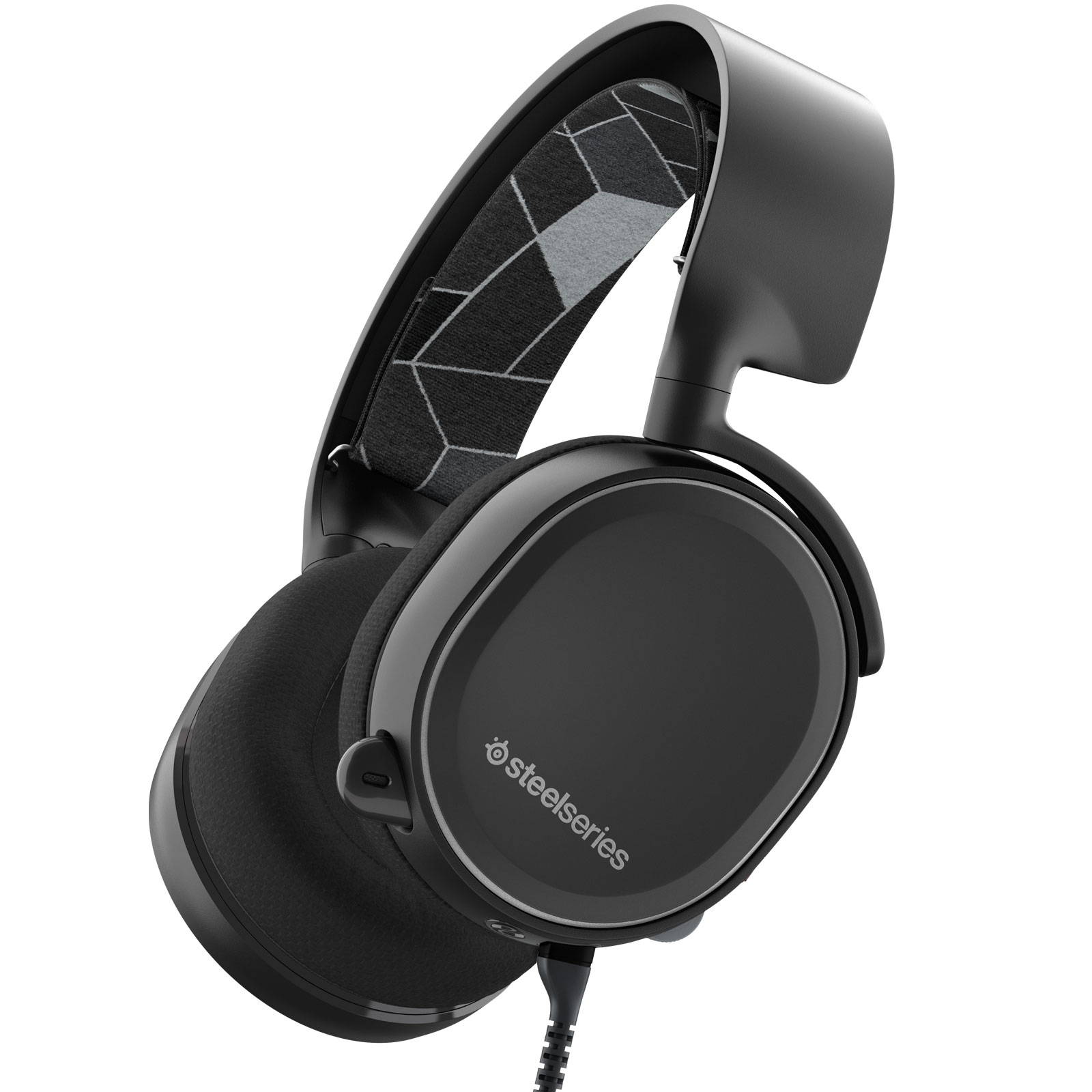 Concernant la conception du casque en lui-même, il faut reconnaître que Steelseries a préféré jouer la carte de la sobriété. Si vous aimez les accessoires qui se démarquent du lot, vous allez être déçus. En effet, le casque arbore un design épuré assez élégant de conception danoise, qui le rend malheureusement non pliable, et possède pour seule « fioriture » le logo de la marque apposé sur les oreillettes. D’ailleurs, contrairement aux autres modèles de la gamme, il s’agit du seul à n’être disponible qu’en noir pour l’instant. Heureusement, l’accessoire est tout aussi sobre qu’il est agréable à porter, grâce au bandeau élastique à système de suspension, dans le même genre que ceux que l’on trouve sur les masques de ski. Concrètement, on a tous connu ces fameux casques qu’il fallait régler en ajustant les oreillettes (ce qui, parfois, pouvait rendre certains produits assez fragiles d’ailleurs). Ici, le bandeau permet d’épouser directement la forme de la tête et de répartir son poids. Il faut avouer que le casque sait se faire oublier et s’avère donc être plaisant à porter. Les oreillettes en tissu aéré jouent également beaucoup dans le confort général, mais le simple fait de ne pas avoir tout le poids du casque au niveau des oreilles est agréable.