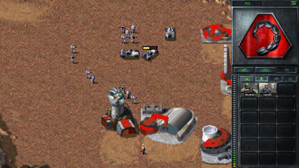 Qui dit HD, dit forcément une plus haute résolution, implémentation de nouvelles fonctionnalités, etc… Et vous avez vu juste. Command&Conquer Remastered Collection revoit plusieurs points à la hausse. L’interface générale a déjà reçu un petit dépoussiérage, l’ajout de raccourcis claviers et de nouvelles features comme le zoom/de-zoom sur le champ de combat rendent ces deux titres plus aux faits des standards actuels. Mais ce qui sera le changement majeur de ce Remastered Collection, c’est bel et bien le rendu en jeu lui-même. Par une simple pression de la touche Espace, vous pourrez passer d’un rendu graphique à l’autre – original ou remastered – et la différence est flagrante. Il est même déroutant la première fois de passer de ces sprites et environnements pixélisés à quelque chose de beaucoup plus lisse et détaillé. Chaque unité et bâtiment a bénéficié d’un soin particulier. Bien que le support 4k soit de mise, il n’est pas nécessaire d’être possesseur d’un écran équipé pour profiter des changements apportés par ce remaster. Les vidéos de briefing mettant en scène de véritables acteurs ont elles aussi eu le droit à leurs retouches. Autrefois couvertes de skylines et de gros pixels qui tachent, elles sont maintenant, elles aussi, beaucoup plus lisses et bénéficiant d’une meilleure résolution. Malheureusement, on ne peut pas dire de même des autres CGI présents qui ne semblent pas avoir été retouchés pour l’occasion. Dommage.