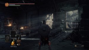 Évidemment, l’exploration se retrouve encore une fois au cœur du jeu, et avec un level design aussi tortueux et organique, il ne sera pas évident de tout trouver. Il existe quelques zones cachées, débouchant sur de nouveaux objets à trouver et de nouveaux boss à pourfendre. Par ailleurs, explorer minutieusement vous permettra d’obtenir les non moins précieux fragments d’Estus. Aussi, afin d’améliorer votre forge, de pouvoir acheter plus d’objet auprès de la servante du sanctuaire, ou encore d’obtenir plus de sortilège auprès du PNJ qui vous les apprend, il est nécessaire de partir à la recherche d’items qui une fois remis au bon PNJ, augmentent le nombre d’articles disponibles, ou pour le forgeron, permet d’imprégner vos armes. (lourde, feu, foudre, chaos…)