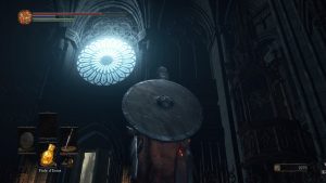 Après Lordan et Drangleic, c’est à Lothric que l’aventure prend place cette fois-ci, avec pour objectif de vous confronter aux derniers seigneurs, ayant perdu l’esprit et renoncé à leur trône. Incarnant toujours un corps immortel, une Morteflamme, le joueur doit parcourir Lothric à la recherche de ces seigneurs, seul moyen de toujours entretenir la flamme, source de vie et d’équilibre sur terre. Même si le scénario est encore cryptique, il est ici beaucoup plus facile à suivre. Les PNJ sont moins énigmatiques que dans les opus précédents, et la narration moins nébuleuse. L’aventure principale s’articule autour du sanctuaire de Lige-Feu, hub principal où vous pouvez augmenter de niveau, améliorer vos armes à la forge, échanger les âmes des boss contre armes et magies, acheter des objets, et vous téléporter vers les différentes zones du jeu. Ce sanctuaire est tout simplement le plus réussi de toute la saga, à défaut d’être d’une originalité débordante. En effet, les joueurs ayant parcouru Demon’s Souls devraient s’y sentir un peu comme chez eux. Mais la mélancolie qui s’en dégage, les PNJ rencontrés, ou encore le thème musical dédié, font de ce sanctuaire un lieu mémorable.