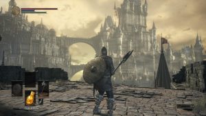 Pour ce troisième opus, From Software a voulu attirer un nouveau public, mais également satisfaire les fans de la première heure. Par conséquent, on se retrouve face à une progression un peu plus linéaire qu’à l’accoutumée et des quêtes secondaires un peu plus claires. Que les fans ne s’offusquent pas, le background du jeu reste bien entendu expliqué principalement à travers les descriptions d’objets, ainsi que dans certains détails de l’environnement. De nombreux clins d’œil et références sont faits au premier opus, tant dans les PNJ que les objets : les fans devraient être ravis ! De plus, certains éléments restés sans réponse dans Dark Souls premier du nom sont ici révélés. Par ailleurs, on peut noter que le jeu ne fait quasiment pas référence à Dark Souls 2. Cela est sans doute dû au fait que l’architecte de la saga, Hidetaka Miyazaki, n’a que peu travaillé sur cet opus, mais il est étrange qu’un épisode se voulant une conclusion de la saga oublie à ce point son aîné.