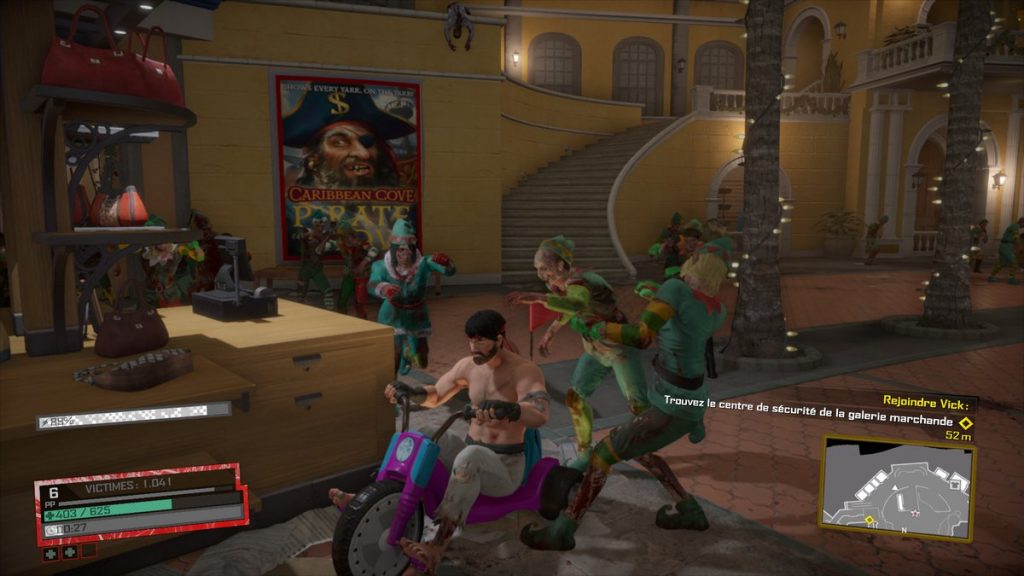 Heureusement, les DLC viennent quelque peu varier l’expérience. Ainsi, au menu il y a : L’Avènement de Frank – n’y jouez surtout pas si vous n’avez pas fini l’aventure principale ! – qui offre quelques nouvelles subtilités, ainsi qu’un mode bonus pour se détendre seul ou entre amis : le Super Ultra Dead Risig 4 Mini Golf. Dans ce dernier, vous avez droit à des parcours de mini-golf assez déjantés, avec des balles géantes de différentes sortes, des clubs délirants (comme des haches ou des marteaux), des zombies à dégommer sur le parcours… Mine de rien, c’est plutôt amusant, notamment entre amis mais, là encore, on en fait tout de même assez vite le tour.