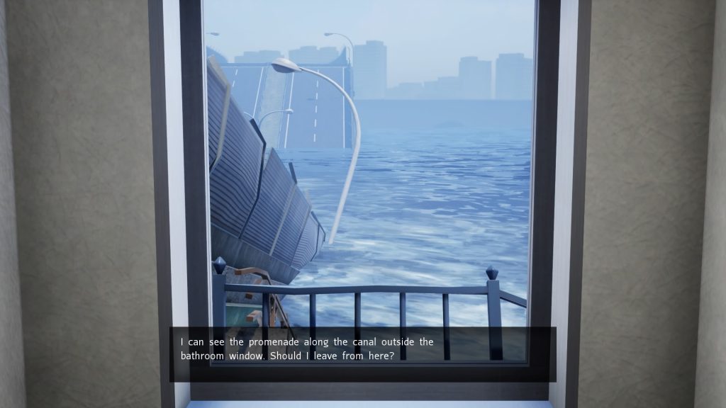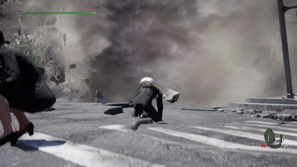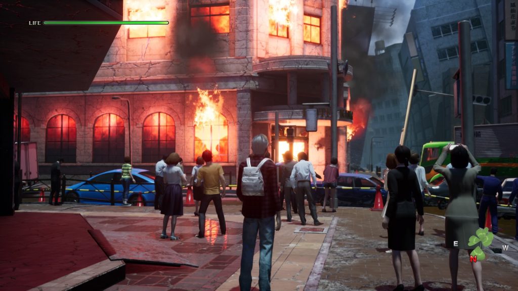 Héros du quotidien dans une situation extraordinaire, Disaster Report 4: Summer Memories vous propose de vivre le pendant et les jours qui suivent un séisme. Un contexte atypique pour le jeu vidéo, qui cherche à se marginaliser en optant par une approche narrative et non survivaliste comme à l’accoutumé. Vous allez enchaîner les rencontres en vaquant d’un lieu à l’autre dans différentes zones de la ville. De la mère de famille et ses enfants en HLM au rentier dans sa tour à profiter du cataclysme, le panel est large et permet une grande variété de protagonistes plus ou moins marquants, ce qui n’est pas déplaisant. Cependant, ne vous attendez pas à creuser des profils psychologiques, cela restera des rencontres fortuites sur le moment, vous permettant juste de progresser dans l’aventure. Tous ont des petits tracas, une question à laquelle répondre ou une aide à demander. Il faudra effectivement faire des choix, beaucoup de dialogues proposent plusieurs façons de répondre, en partant du Béni-oui-oui pour arriver à l’aller simple en enfer. Le hic, cela reste qu’une façon de répondre n’est pas un choix mais une obligation de direction. Faussement libertaire, le soft s’ancre dans une expérience narrative linéaire sans jamais chercher à approfondir ses sujets. Mais tout n’est pas à éviter, au contraire, dans ces choix de réponse vous y trouverez parfois des choses à vous en décrocher la mâchoire. Ça ne change rien à l’aventure, ou si, juste l’expression de votre personnage mais au moins, ça a la décence de surprendre à chaque boite de dialogue.