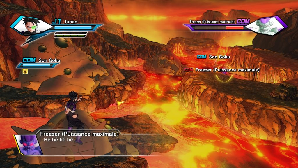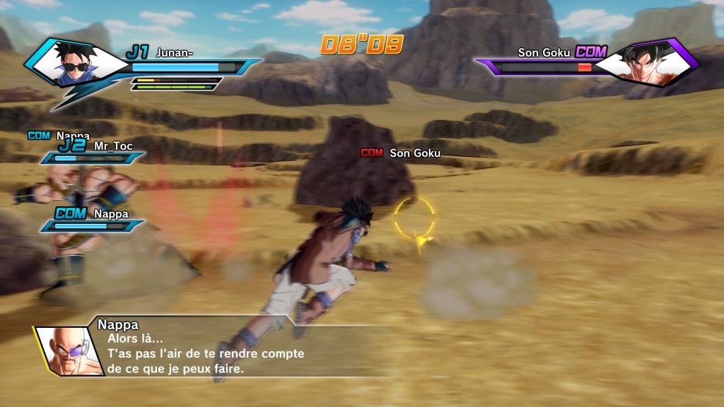 Pendant toutes ces années, développeurs et éditeurs ont tenté de parvenir à retranscrire au mieux ce qu’était Dragon Ball Z. Certains ont presque touché le soleil, d’autres se sont lamentablement écrasés sans même avoir pu battre des ailes. Et si au final, la réponse était sous nos yeux depuis tout ce temps ? C’est fort probable, car la formule que l’on va vous dévoiler a faillie être -en partie- appliquée à plusieurs reprises, mais il manquait une once de folie, un grain de disproportion ou une certaine prise de risque. C’est ainsi que les concepteurs du jeu ont opté pour des combats dans des arènes relativement vastes qui seront le théâtre d’affrontements en 1 VS 1, 2 VS 2 et 3 VS 3 en y incorporant des éléments d’un jeu de combat finement mélangés à ceux d’un beat’em all. Et comme par magie, le tout prend forme sous nos yeux ébahis, l’alchimie est totale. Soyons honnêtes avec vous, le jeu n’est pas parfait. Mais les premières secondes de jeu sont jouissives et diantre, que c’est bon.