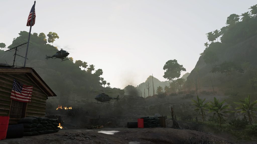 Si le scénario n’est pas très long à expliquer, l’extension « Hours of Darkness » n’a pas à rougir face au jeu de base. La qualité graphique est toujours au rendez-vous et propose quelques moments d’émerveillement devant différents paysages, lieux ou spectacles naturels. Bien qu’inquiétante d’une certaine manière, la jungle vietnamienne est tout aussi magnifique (voir image ci-dessous). Et ce n’est pas la bande sonore qui viendra faire défaut à cet ensemble très cohérent et pour le moins surprenant. Elle se veut très nerveuse, voire presque rock’n roll par moments, lorsque le joueur se trouve en plein combat.