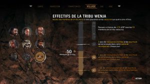 Très vite, Takkar fera la rencontre fortuite d’une première alliée, Sayla, une cueilleuse Wenja elle aussi séparée de son groupe. Une première car elle sera ensuite suivie de plusieurs autres personnages spécialisés dans différents domaines (chasse, combat, maîtrise des bêtes, survie…). A travers des missions optionnelles tout d’abord, vous devrez aller à la rencontre de ces précieux alliés dispersés sur la très grande map afin de les ramener à votre village en construction. Vous pourrez alors fabriquer leur propres huttes et commencer à développer vos compétences dans chacun des domaines, grâce au système d’expérience et aux points de compétences. Différents arbres d’évolution donc, mais qui restent dans la même veine que Far Cry 4. Chacun de ces 7 spécialistes vous donnera entre 3 et 4 missions qui s’ajouteront aux 13 missions de la trame principale. Comme bien souvent dans ce genre de jeu, il ne sera pas possible de faire un « tout droit », puisque le scénario principal qui vous obligera à passer par les missions des spécialistes pour progresser dans l’aventure.