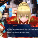 Ce nouvel épisode se situe juste après la victoire de nos deux héros de la précédente guerre. Ils ont alors été récompensés avec une Regalia, un anneau magique. Malheureusement, les protagonistes se réveillent amnésiques, une pratique assez courante dans le monde du jeu vidéo pour rappeler le contexte aux personnes qui ne connaissent pas l’univers. C’est donc votre Servant qui va tenter de vous faire recouvrer votre mémoire avec de nombreux dialogues lors des deux premières heures de jeu. Seulement voilà, le royaume que vous avez conquis par le passé est de nouveau attaqué et il faudra donc le défendre. Il est donc fortement conseillé de connaitre l’univers des Fate avant de se lancer dans l’aventure afin d’éviter d’être perdu rapidement dans les dialogues. D’autre part, l’histoire est très bien construite, car après avoir fini le scénario avec un premier Servant, il est possible de refaire une partie avec un autre héros et le point de vue différera également. En tout cas, on sent qu’il y a eu un beau travail de la part scénaristes pour offrir aux joueurs une belle suite. Petit bémol, le jeu ne possède pas de traduction française. Cela est bien dommage, d’autant plus qu’il y a un nombre important de dialogues tout au long du jeu. Il ne faut pas oublier que les jeux Fate étaient des visual novels avant d’être des musô.