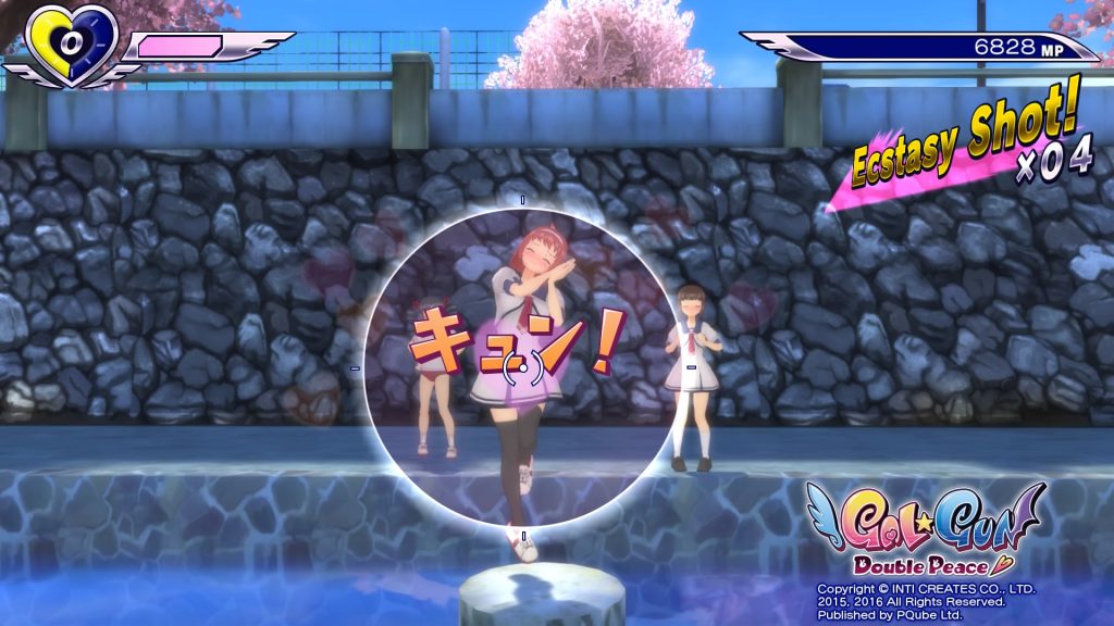 La prise en mains du rail shooter n’a rien de compliqué, d’autant que des tutoriels vous sont proposés tout au long du scénario. Vous disposez d’une barre de vie en haut à gauche de l’écran, laquelle diminue lorsque vous recevez des déclarations. Pour éviter cela, deux attaques sont disponibles : la première est le tir qui envoie des phéromones et permet de stopper l’étudiante. Plus vous restez appuyé sur la touche, plus les phéromones envoyés seront plus puissant : de quoi stopper net les harceleuses. Aussi il existe une attaque plutôt inédite dans un jeu vidéo, à savoir le Toki-Toki, qui s’active avec la touche triangle une fois votre jauge de puissance remplie. Celle-ci permet de stopper le temps et d’emmener jusqu’à trois filles dans une sorte de dimension parallèle où il suffira de les toucher sur des endroits intimes jusqu’à l’extase. Leur jouissance sera telle, qu’une énorme explosion orgasmique rendra inoffensive toutes les jeunes filles aux alentours.