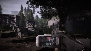 Pour le reste, Get Even est un jeu mêlant recherche, action et résolution d’énigmes dans un univers parfois très oppressant. Votre héros disposera pour progresser d’un smartphone doté de nombreuses fonctions (lumière UV, caméra thermique, radar et appareil photo intelligent) permettant d’analyser des indices ou révéler des fractures dans les souvenirs. Un outil ultra présent rendant votre progression assez facile, surtout dans les zones où se trouvent des ennemis. Votre petit accessoire vous indiquera en effet l’emplacement de ceux-ci et leur champ de vision, vous incitant à utiliser l’infiltration pour progresser. Malheureusement, cela se résume très souvent de la même façon : patienter, bouger, patienter à nouveau et apprécier l’IA pourrie des ennemis qui, lorsqu’ils vous détecteront, se mettront un peu à courir dans tous les sens. Si vous souhaitez utiliser la manière forte, cela est évidemment possible, mais utiliser votre arme pouvant tirer à 90° tout en vous gardant à couvert s’avèrera sans grand intérêt.