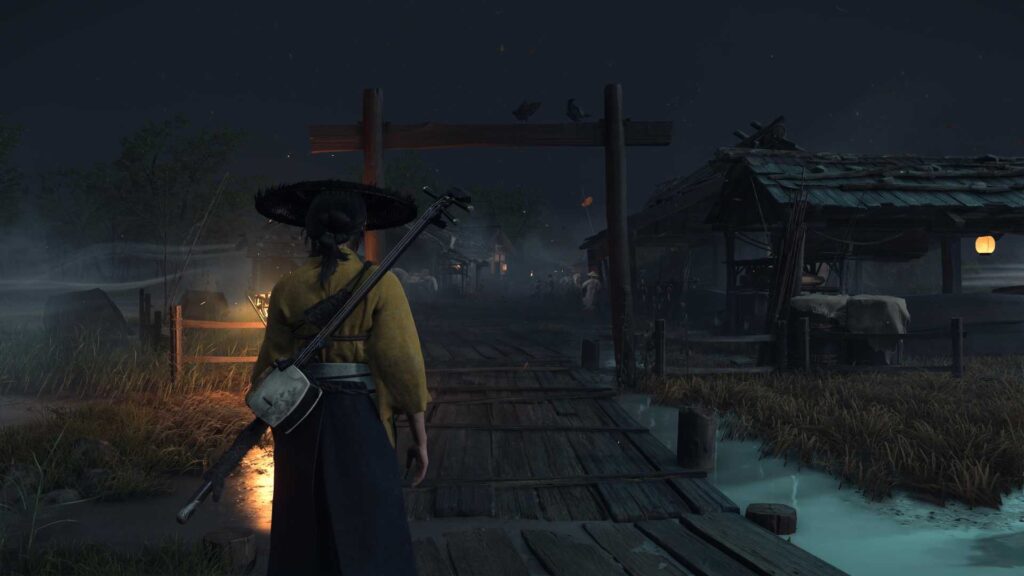 Du côté de la bande-son, on retrouve des inspirations japonaises mêlées au son du shamisen, l’instrument fétiche d’Atsu. Assumant ses influences de Kurosawa – et plus particulièrement du film Yojimbo – la musique évoque parfois un far-west japonais. Intéressante mais peu marquante, on l’apprécie quand elle se fait entendre, mais elle reste discrète. Toujours côté musique, il est possible d’appliquer une playlist lo-fi en hommage à Nujabes, créée par Shinichirō Watanabe, connu pour son travail sur Samurai Champloo. Sur le principe, le clin d’œil est appréciable, même si nous avons trouvé qu’elle dénotait un peu trop avec l’ambiance générale du jeu.