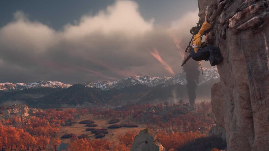 Avec autant de choses à voir, on regrettera tout de même le manque de véritables lieux iconiques à la manière du Temple d’Or, remplacé ici par la maison d’Atsu. Cela ne signifie pas que les environnements sont inintéressants : le bar des mercenaires, par exemple, propose une esthétique particulière, mais réserve peut-être moins de surprises que le premier opus. Pour autant, le titre exploite pleinement la puissance de la console pour offrir des panoramas parfois incroyables, notamment lorsqu’il nous demande de gravir la montagne. À la manière d’un Breath of the Wild, tout ce que vous apercevez peut être atteint. La comparaison ne s’arrête pas là : elle se retrouve également dans la construction narrative. En effet, comme dans le titre de Nintendo, vous pouvez affronter vos cibles dans l’ordre de votre choix, ou bien vous mesurer directement au grand méchant. Une liberté appréciable, en parfaite adéquation avec un personnage qui continue à se battre en mercenaire indépendante malgré les avances de nombreux clans.