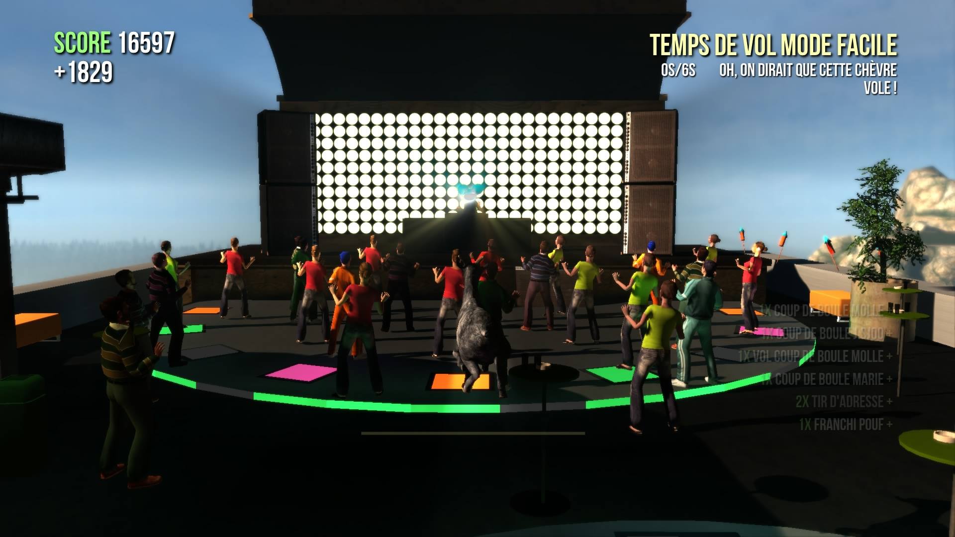 Ainsi, vous pouvez sauter, bêler, foncer tête baissée en donnant de douloureux coups de boule et même lécher objets et individus afin de les coller à votre langue. Par exemple, empaler un passant à grand coup de cornes vous octroiera un certain nombre de points, de même lorsque vous foncez sur un véhicule qui explose à votre contact. Réaliser une série de loopings et retomber sur vos pattes, détruire l’environnement qui vous entoure, mettre fin à une petite sauterie improvisée, tout est prétexte à engendrer des points, vous permettant par la suite d’être classé à l’échelle mondiale, notamment grâce à la réalisation de combos !