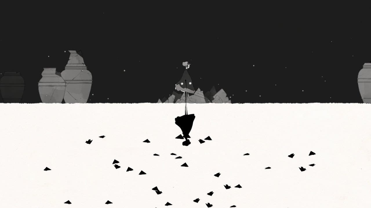 En lançant Gris pour la première fois, nous faisons rapidement connaissance avec notre protagoniste et nous sommes accueillis par une douce mélodie d’entrée qui laisse un bon présage sur la bande-son à venir. Nous incarnons une jeune fille optimiste mais emprisonnée dans un monde qu’elle a imaginé du début à la fin, laissant un souvenir douloureux prendre le contrôle. Nous découvrons tout d’abord un monde sans couleur, vide de vie et d’esprit où seule votre présence compte à l’écran. Cet environnement sombre montre la détresse du personnage qui souhaite s’exiler et combattre ce chagrin. La jeune fille se déplacera dans un univers 2D entourée de sorte d’orbes blanches qui l’aideront dans sa progression, notamment en lui créant des passages aériens tels des constellations, passant ainsi d’une partie du monde à l’autre.