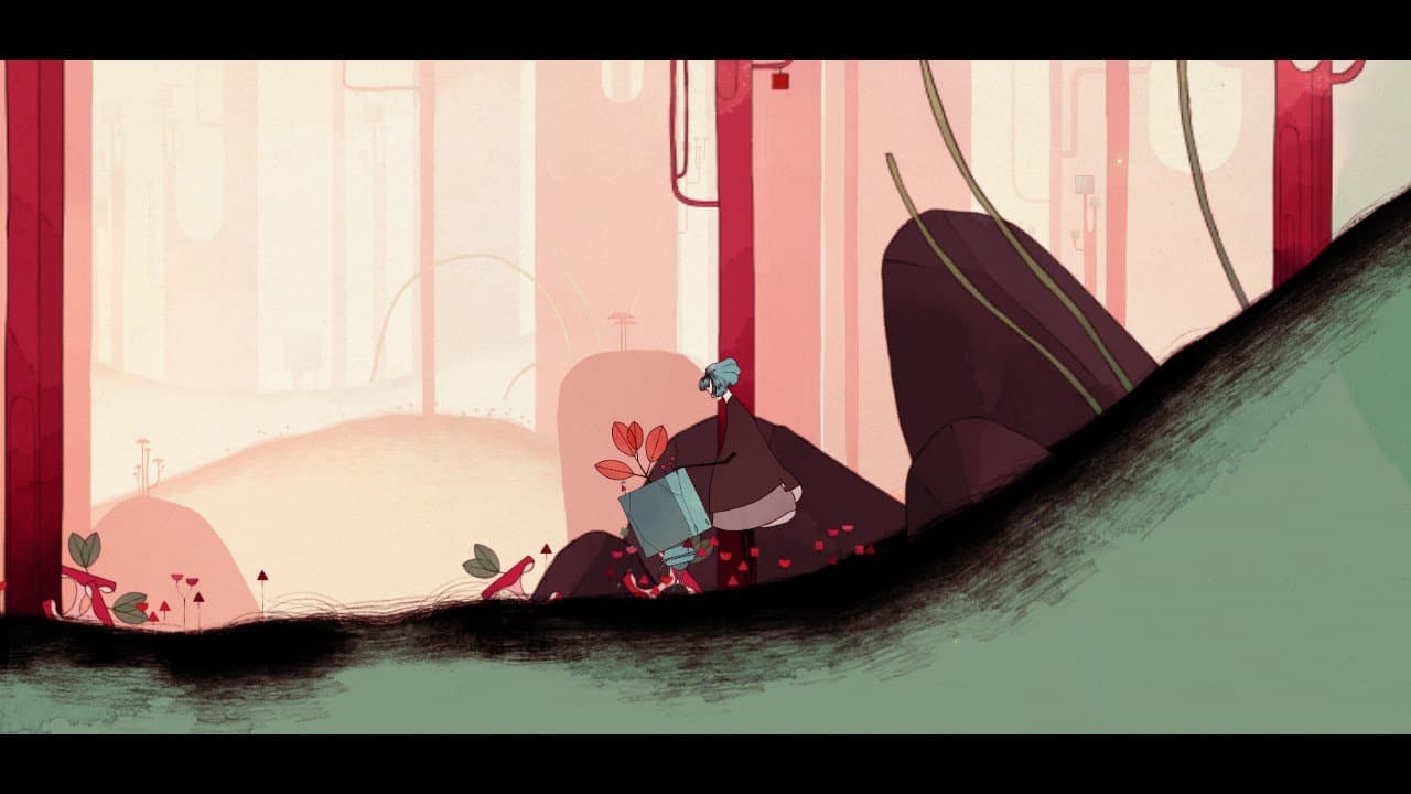 Après un début assez triste, notre personnage fera la rencontre d’une simple main de pierre, qui est en réalité la représentation de la main du protagoniste dans la vie. Cela se reproduira plusieurs fois dans l’histoire qui, une fois installée au creux de sa paume, nous offrira un monde de couleurs qui se développera au fil du temps. En effet, lors de la première rencontre, nous débloquons la couleur rouge qui illuminera le monde et offrira de la gaieté, et plus les rencontres se multiplieront, plus les couleurs se débloqueront en continuant par le vert, le bleu et ainsi de suite, sublimant et suggérant un tout autre aspect de l’environnement qui nous entoure.