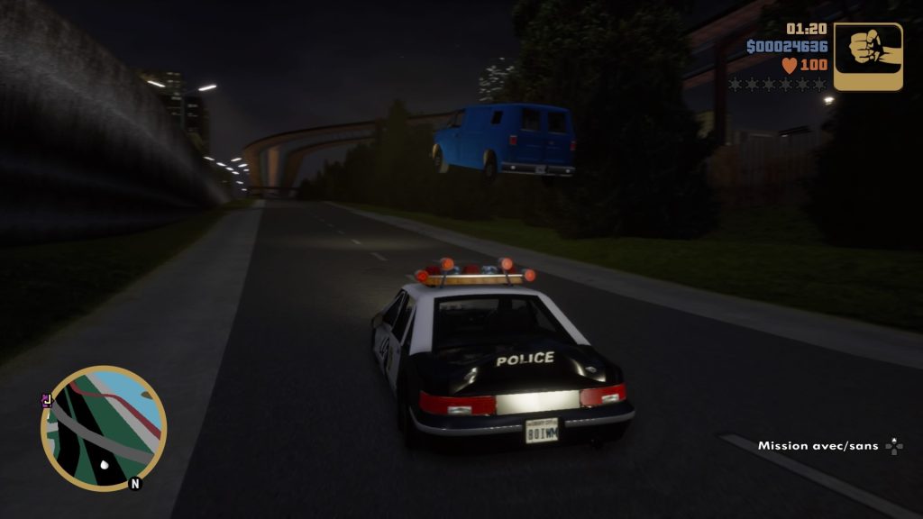 Malgré la pléiade de défauts présents dans les remaster, les jeux sont bel et bien jouables de A à Z. On retrouve toujours le fun parfois totalement barré de certaines missions. Il vous faudra bien une dizaine d’heures en ligne droite pour venir à bout de chaque opus. De plus, et si le jeu s’avère techniquement bancal, il nous offre au moins la possibilité d’apprécier la trilogie dans une résolution plus haute, du moins sur console. Si vous possédez la version dite « PS2 Classic », il s’agit d’une émulation conservant le ratio 4:3 ainsi que sa résolution en 240p. Autant dire que cela risque de piquer vos yeux. Pour cela, GTA: The Trilogy – The Definitive Edition offre un bien meilleur confort. L’éclairage a lui aussi été retraité, offrant quelques effets et reflets sympathiques, surtout de nuit dans les quartiers où luisent les néons de différentes enseignes.