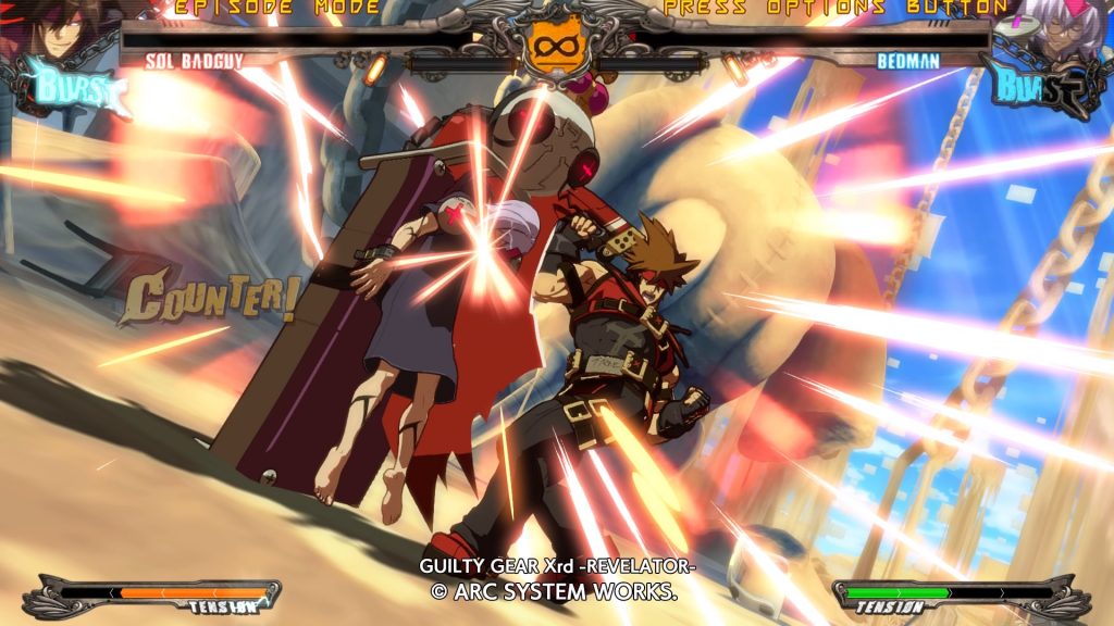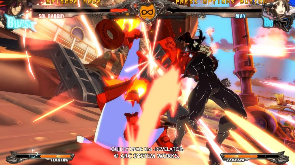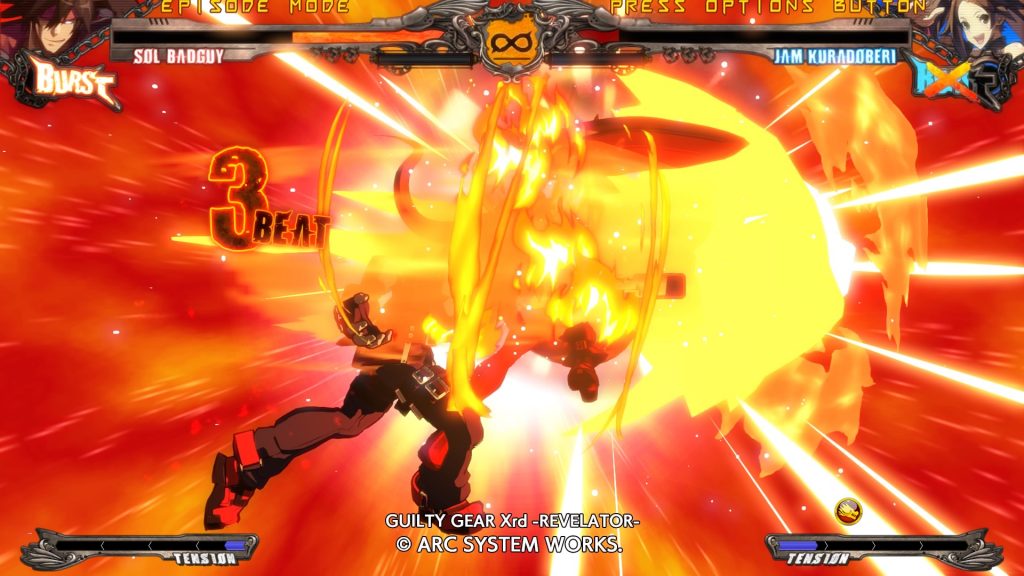 Bien que son nom puisse laisser planer le doute, Guilty Gear Xrd-REVELATOR- est bien la suite de l’opus SIGN. Néanmoins, en dehors des quelques ajouts que nous évoquerons plus bas, le jeu se calque sur la base de son prédécesseur sur bien des aspects. Visuellement, le titre en impose toujours autant, et même si tout le monde n’accrochera pas à ces graphismes en 2.5D accompagnés de cel-shading, il faut reconnaître que cela offre des combats absolument impressionnants. Autant le dire tout de suite, le jeu est aussi plaisant à jouer qu’à regarder. Dans toute l’histoire des jeux de combat, on a rarement vu des affrontements aussi stylés. Il faut dire que la bande-son rock de Daisuke Ishiwatari y est pour beaucoup et accentue très clairement le côté badass des combats. Mais tous ces aspects vous seront bien mieux résumés dans notre test de Guilty Gear Xrd -SIGN-.
