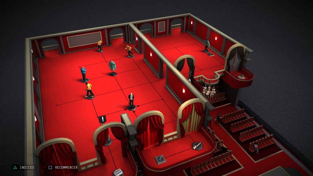 Dépourvue de scénario, la création de Square Enix Montréal est en soi un enchaînement d’étapes comprenant un objectif primaire et deux secondaires, tous obtenables indépendamment. L’Agent 47 doit réussir en priorité à atteindre la case finale (ou assassiner une cible dans certains cas) pour pouvoir compléter un niveau. Mais il peut être aussi amené à récupérer une mallette, devoir éliminer tous les ennemis ou accomplir la mission en moins de X tours, par exemple. Une façon d’aborder de plusieurs manières le jeu, même si peu d’options s’offrent à vous compte tenu des trajectoires prédéfinies.
