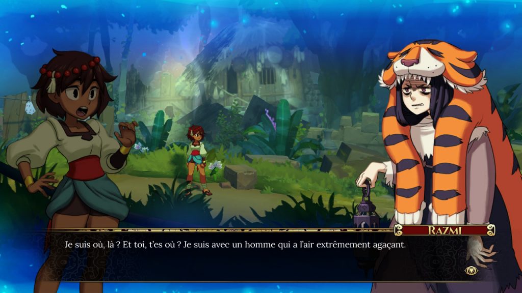 Pour revenir quelques instants sur la composition de l’équipe d’Ajna, il convient de savoir que chacun possède un rôle qui lui est propre, soit archer, guerrier, soigneur etc., et deux ou trois capacités spécifiques. Ils profitent également de leurs propres traits de personnalité, ce qui est assez bien écrit et sincèrement amusant par moments. Mention spéciale à Razmi, la chamane du groupe. Autant vous prévenir tout de suite, le roster de personnages à débloquer est relativement étendu, avec notamment 20 Incarnations possibles, et c’est toujours réellement efficace. On prend beaucoup de plaisir à découvrir leurs capacités et à s’essayer à diverses compositions d’équipe pour trouver celle qui fera mouche en fonction de la situation rencontrée. C’est également bien amené au niveau de l’histoire. Chapeau bas à l’équipe de développement sur ce point.