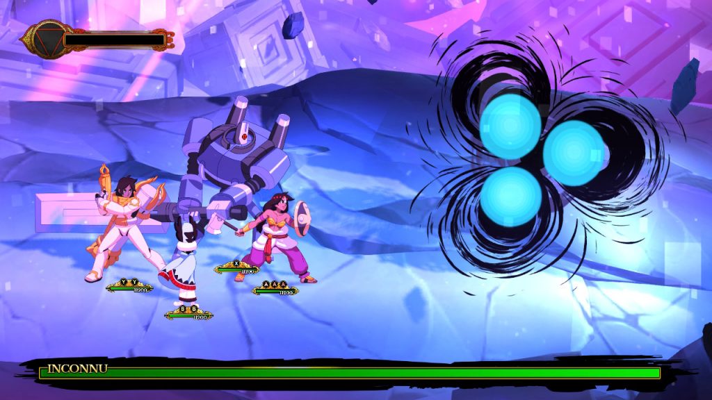 Mais ce n’est pas le seul ingrédient intégré au jeu. En plus de cela, en dehors de ces phases d’exploration, le système de combat reprend en grande partie celui typique des RPG avec un accent de « tour par tour » dynamique. Après avoir composé notre équipe de quatre personnages, on se plonge dans les divers combats (moins présents que dans certains autres titres) répondant à une combinaison bien spécifique : chacun d’entre eux se voit attribuer une touche bien particulière. Par exemple, Ajna va être affiliée à la touche A alors que Razmi bénéficiera du bouton X. Possédant de manière systématique trois attaques, il faudra enchaîner les combos avec les divers personnages de votre roster pour faire descendre la barre de vie des ennemis, pouvant se montrer nombreux. Bien évidemment, ces derniers bénéficieront également d’une phase d’attaque et il faudra se protéger en actionnant la touche adéquate au bon moment pour sauvegarder sa jauge de vie. De plus, les attaques et défenses font monter la barre d’Iddhi, située en haut à gauche de l’écran, permettant d’infliger des coups spéciaux au moment voulu ou bien de réanimer les alliés tombés au combat. Un petit plus au gameplay qui rend le tout davantage stratégique, surtout quand on se retrouve en face de boss plutôt coriaces avec beaucoup de PV et que la situation ne semble pas jouer en notre faveur.
