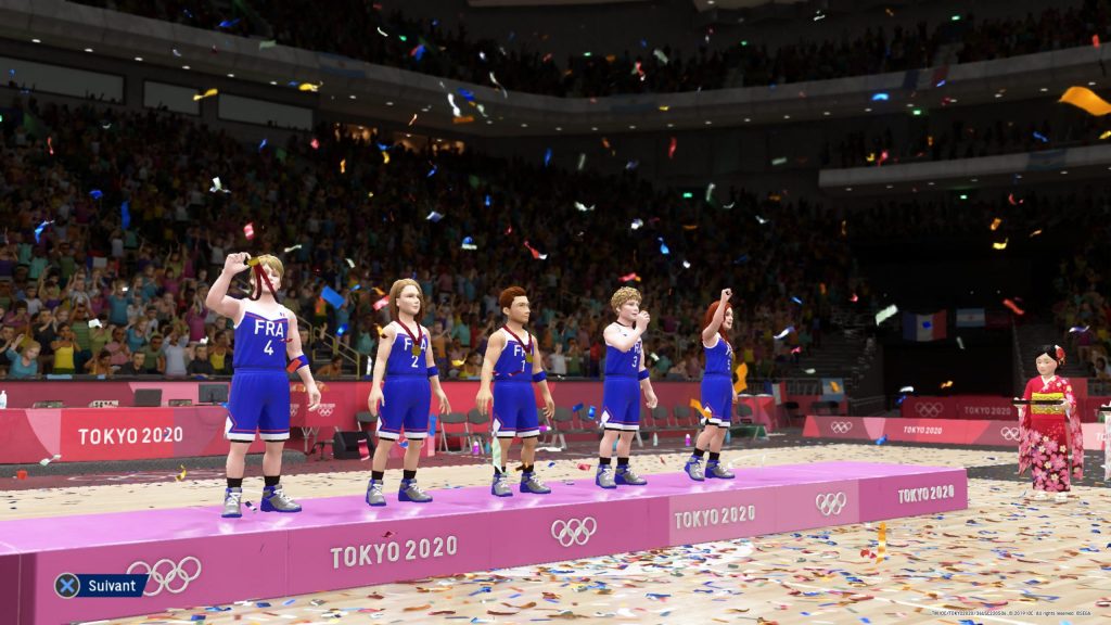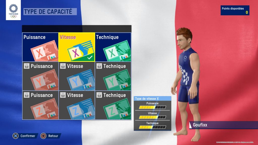 En parlant des personnages, un éditeur de création est disponible et là aussi surprise, il est diablement complet. Vous pouvez personnaliser votre athlète comme bon vous semble et vous ne serez pas limité dans vos envies. Yeux, cheveux, visages, sourcils, main forte… tout est absolument paramétrable. De plus, c’est ici que vous pourrez choisir les capacités de vos athlètes. Dans Jeux Olympiques de Tokyo 2020 – Le Jeu Officiel, vous choisissez également les caractéristiques de votre athlète en fonction de 3 critères : puissance, vitesse et technique. A vous donc de les changer en fonction des différentes épreuves, bien que cela ne soit pas possible lorsque vous jouez en ligne dans une compétition personnalisée (avec plusieurs disciplines différentes). Pour débloquer les différents « profils », vous remporterez des points au cours des épreuves qui vous permettront de changer vos compétences. Dernier aspect intéressant, vous pouvez également personnaliser tous les membres de votre équipe impliqués dans la compétition, notamment pour les sports collectifs. Le jeu est donc une réussite sur ce point et les nippons sont très sensibles à tout l’aspect customisation.