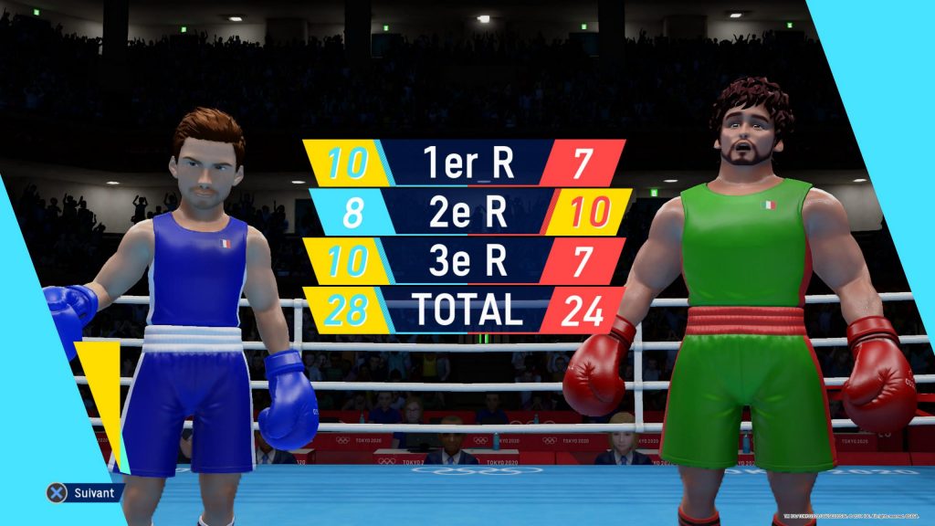 Jeux Olympiques de Tokyo 2020 – Le Jeu Officiel propose moins d’épreuves que son ainée London 2012. Si le soft précédent nous proposait 30 épreuves, nous nous retrouvons avec seulement 18 épreuves (+2 épreuves jouables également en double : le tennis de table et le tennis) et des oublis majeurs. Alors oui, le jeu est avant tout proposé au public japonais et nous européens le ressentons sur la sélection générale des épreuves. Si l’athlétisme et la natation étaient omniprésents à chaque nouvelle itération, SEGA fait le pari osé de ne proposer que le 100m, le 4x100m, le lancer du poids et le lancer du marteau pour le premier sport cité. De nouveaux sports comme la boxe, le judo ou encore l’escalade qui feront son arrivée pour la première fois dans l’histoire des Jeux Olympiques lors de cette édition sont jouables. Si ce dernier s’en tire bien, le rugby à 7 ainsi que le football sont les deux pires épreuves, la faute à des animations grossières et à une jouabilité des plus désastreuses. En effet, nos athlètes sont raides comme des piqués, des problèmes de collisions sont présents et nous n’approuvons aucune notion de plaisir de jouer à ces deux épreuves tant la maniabilité est brouillonne. L’escalade ou encore le judo, qui est un mélange entre jeu de combat et le matraquage du bouton croix est plaisant à jouer, bien que ce dernier ne soit jouable qu’en équipe. D’autres épreuves comme le tennis, la natation ou encore le baseball (qui fait par ailleurs parti des meilleurs jeux) sont présents.