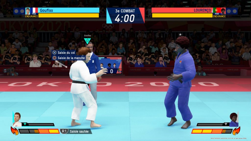 Comme pour tous les jeux destinés aux bonnes soirées entre amis, Jeux Olympiques de Tokyo 2020 – Le Jeu Officiel dispose d’une prise en main quasiment instantanée. Alors bien-sûr, pour les épreuves qui nécessitent un départ parfait (100m, 4x100m…), vous aurez un avantage au début puisque vous connaitrez les starters mais globalement, même une personne qui n’a jamais touché au jeu pourra vous battre dès le premier essai, ce qui est très satisfaisant. Le gameplay s’appuie sur des mécaniques déjà connues pour la plupart des épreuves : martyriser le bouton Croix pour accélérer au 100m, trouver un angle de 45° lors du saut en longueur pour aller le plus loin possible. Toutefois, nous avons été agréablement surpris par quelques épreuves et notamment le tennis de table. SEGA aurait pu se contenter d’utiliser les touches de la manette pour lifter, couper nos coups mais que nenni. Ainsi, on se retrouve avec une maniabilité intégralement avec les deux joysticks : le droit pour donner des coups et des effets et le gauche pour se déplacer ce qui fait du tennis de table l’un des meilleurs jeux (si ce n’est le meilleur) jamais sorti sur consoles pour cette discipline, le rythme de jeu soutenu étant très proche de la réalité. D’autres épreuves comme la boxe, le judo, l’escalade ou encore le BMX sont plaisantes à jouer avec une vitesse des plus représentatives de la réalité.