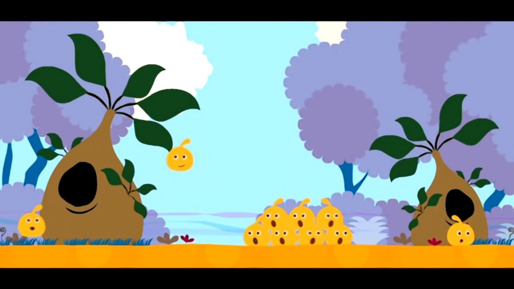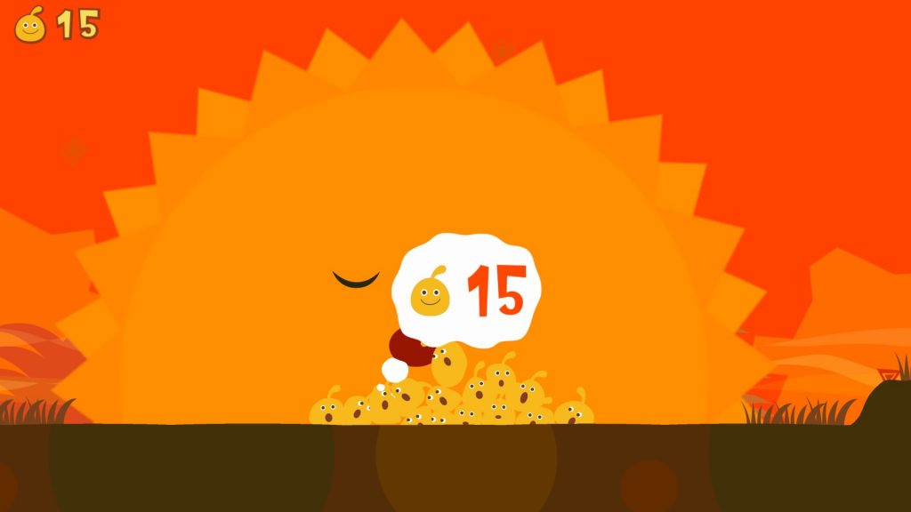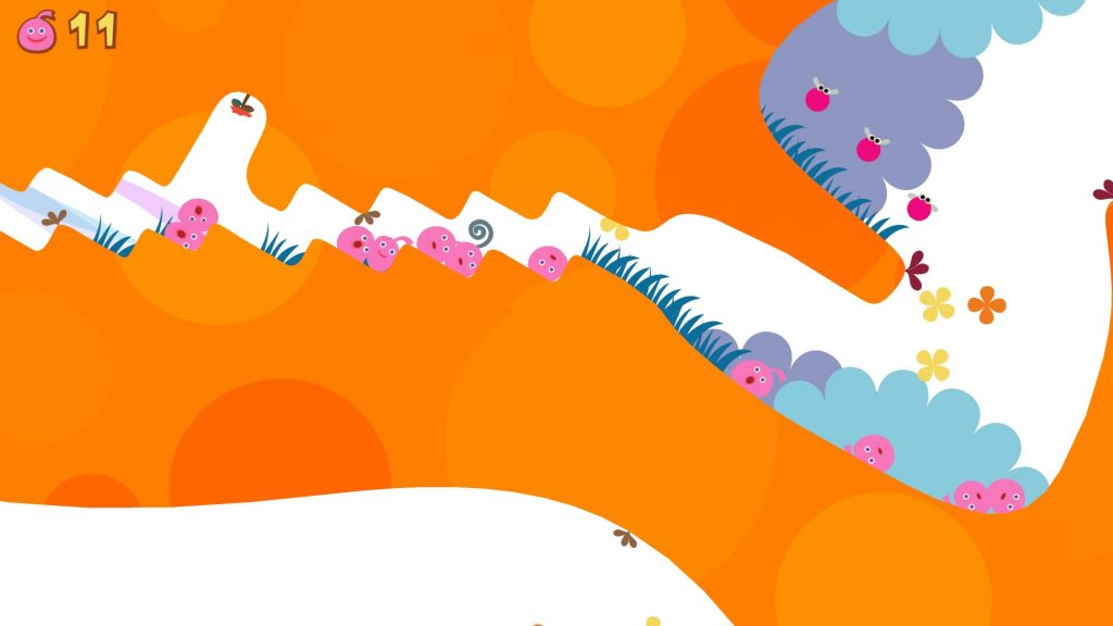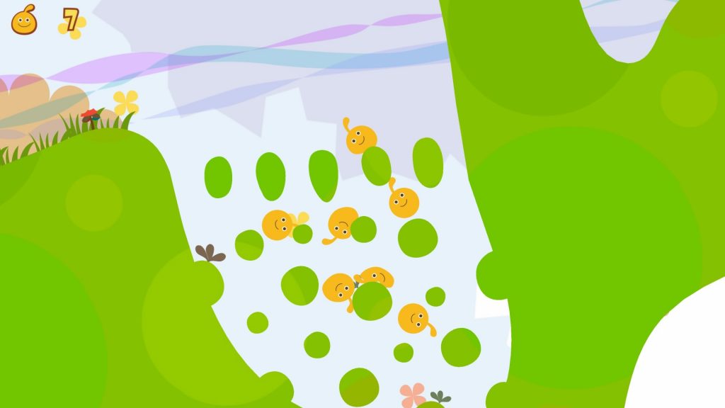 Si le but du jeu est très classique, puisqu’il suffit d’aller d’un point A à un point B, l’originalité n’est jamais bien loin. Comme sur la première console portable de Sony, le titre nous oblige à presser les boutons R1 ou L1 pour incliner l’environnement vers la gauche ou vers la droit. Ce procédé permet de faire avancer notre LocoRoco et en pressant les deux gâchettes en même temps, notre avatar est capable de sauter. Cela peut sembler évident sur le papier mais en réalité, le gameplay demande souvent beaucoup de précision car plus notre petite boule jaune grossie, plus il est difficile de la déplacer. Ainsi, il n’est pas rare de batailler un certain temps sur un saut un peu délicat pour atteindre la zone souhaitée. Rien d’insurmontable bien entendu mais la frustration peut parfois se faire sentir. Heureusement, notre progression est ponctuée par quelques instants de contemplation lorsque notre petit héros se laisse porter par le vent en virevoltant dans les airs. Il est même possible de diviser notre protagoniste en plusieurs parties en pressant O. C’est idéal pour s’infiltrer dans les passages étroits. Nous avançons sans trop de soucis même s’il faut se méfier des Mojas, qui peuvent dévorer nos LocoRoco et peuvent même parfois en faire disparaître plusieurs en même temps. Attention donc, car si votre nombre de petites boules atteint zéro, c’est le game over. Cependant, il y a très peu d’adversaires par niveau donc le challenge n’est pas non plus très élevé.