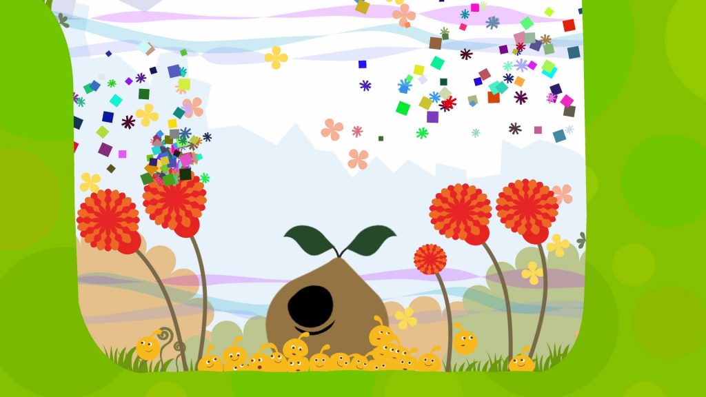 Le vrai plaisir de ce LocoRoco Remastered réside dans son univers coloré et joyeux au possible. La palette de couleurs est variée et même si le rendu est un peu simpliste, le charme est indéniable. Si les graphismes restent très similaires à ceux de la version PSP, nous apprécierons la résolution en 1080p ou en 4K sur PS4 Pro. Ce n’est pas forcément le meilleur jeu pour servir d’ambassadeur à l’ultra HD ou même au full HD, mais le rendu général reste plus que charmant. Surtout, les environnements parviennent à se marier parfaitement avec la bande son. Les bruitages sont basiques mais la bande originale est absolument délirante. Difficile de décrire le style musical employé ici mais cela colle avec l’univers dépeint sous nos yeux. Notre avatar ne s’arrête jamais de chanter et le haut parleur de la Dualshock 4 relaie lui aussi les chansons à certains moments bien précis. Cette fonctionnalité dispensable a tout de même le mérite d’exister. Surtout, il faut bien faire attention aux sons qui nous entourent car ils peuvent nous alerter d’une présence hostile, d’un passage secret ou bien d’un petit MuiMui qui roupille dans son coin en attendant d’être trouvé. Ces petits bonhommes nous offrent ensuite divers bonus accessibles via le menu principal.