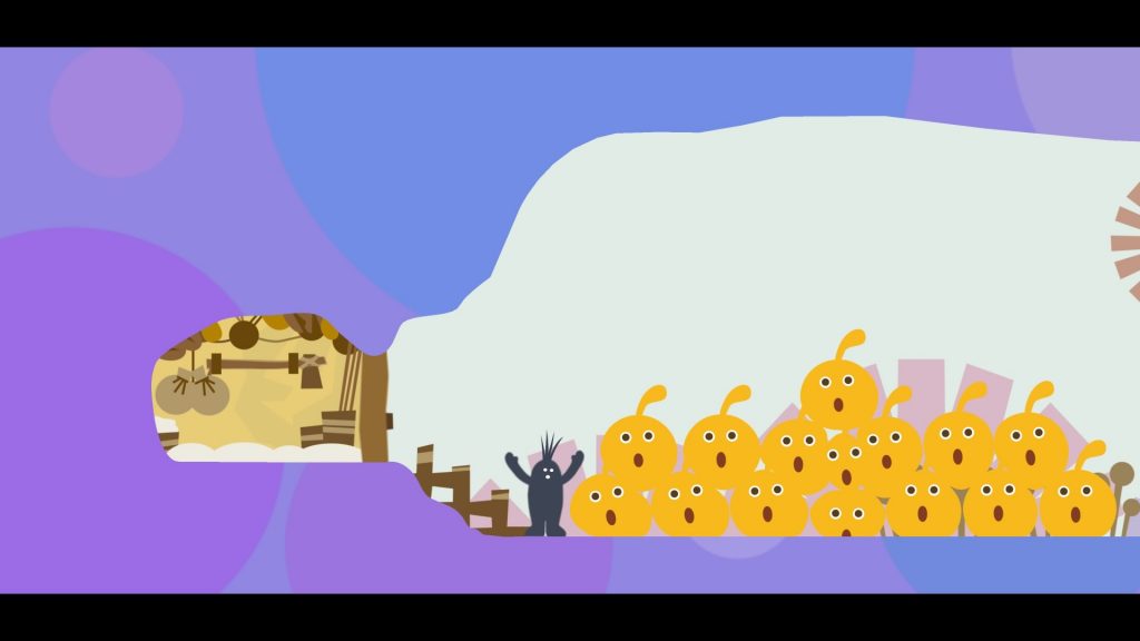 En récupérant des petites étoiles dissimulées un peu partout dans les différents niveaux des cinq mondes du jeu, nous obtenons des objets qui peuvent être ensuite utilisés dans la « Maison Loco ». Il est aussi possible d’accéder à des mini-jeux pour là encore gagner des récompenses. Il y a le jeu du grappin (bien frustrant) ou encore une sorte de parcours à terminer en faisant attention aux différents dangers qui se présenteront à nous. Toute cela vient gonfler la durée de vie qui n’est pas forcément très élevée. En même temps, LocoRoco Remastered est vendu pour une vingtaine d’euros donc il ne fallait pas s’attendre à des dizaines d’heures passionnantes. Bien au contraire, le titre n’est ni trop long ni trop court, même si le tout demeure assez répétitif. Nous regretterons tout de même d’absence de réelles nouveautés, ce qui est une habitude avec les remasterisations. L’ajout le plus notable reste la possibilité de progresser à l’aide de la détection de mouvement de notre manette. Ainsi, en pressant le pavé tactile, les touches ne sont plus d’aucune utilité et il suffit d’incliner le controller pour faire avancer LocoRoco. Malheureusement, cette maniabilité n’est pas précise et on retournera rapidement vers le gameplay classique.