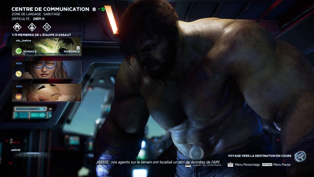 Pour ceux qui ont pu s’essayer à la bêta il y a quelques semaines, vous serez d’accord pour dire que le constat était alarmant. Divers glitchs graphiques et bugs de son, framerate inconstant, matchmaking bugué et désynchronisations… bref, rien n’allait. La bonne surprise est de constater que Crystal Dynamics a su prendre les choses en mains et rapidement corriger la plupart des problèmes les plus néfastes. Effectivement, le framerate est bien plus appréciable qu’avant, les bugs de son qui passaient de l’anglais au français de manière intempestive ont disparu, de même pour les désynchronisations. Cependant, tout n’est pas encore parfait. Si le framerate s’avère meilleur, il en est autre quand l’action devient un peu trop chargée à l’écran. Des glitchs graphiques de texture sont encore à déplorer et le matchmaking nous apparaît encore laborieux par moments. On attend parfois plusieurs minutes avant de pouvoir se grouper avec d’autres joueurs et là encore, il n’est pas rare qu’une ou deux personnes manquent à l’appel avant d’être automatiquement remplacées par l’IA. Sans être extraordinaire, celle-ci tient tout de même la route et on ne s’arrache pas les cheveux comme dans bon nombres de jeux à pester contre son incohérence. Au moment où ces lignes sont écrites, Marvel’s Avengers reçoit une toute nouvelle mise à jour qui devrait corriger quelques problèmes persistant, dont un écran de chargement infini rapporté par certains utilisateurs.