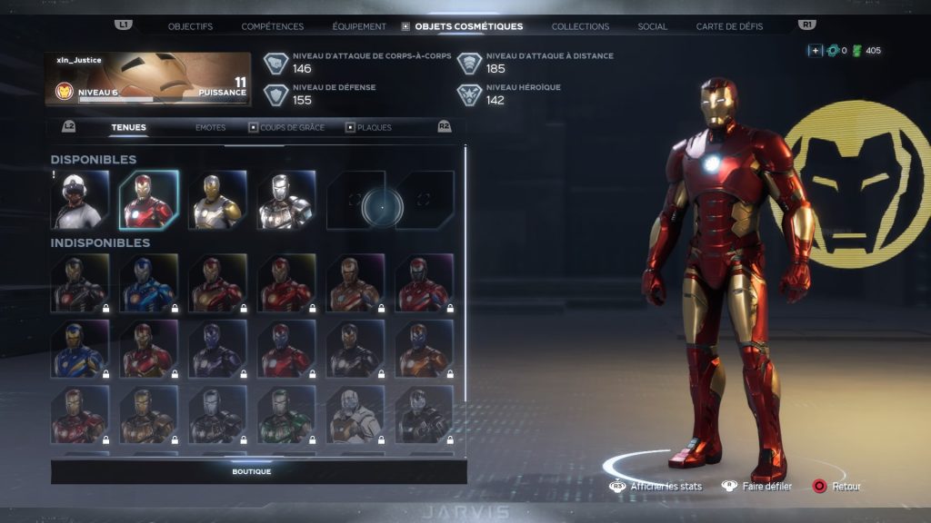Marvel’s Avengers compte sur un système de skins à débloquer. Il existe deux moyens de les obtenir. Le premier réside dans la récompense liée à la réussite de certaines missions scénarisées, d’objectifs dans un système similaire à un Battle Pass, ou encore via l’achat avec des crédits dans la boutique du jeu. Un petit pécule de crédits vous sera octroyé en atteignant des niveaux précis dans la carte de défi, à l’ouverture de coffres et dans certains évènements hebdomadaires. Sinon, il faudra en acquérir contre de l’argent réel. L’obtention des crédits in-game peut s’avérer fastidieux, comme une invitation à passer par la boutique. Marvel’s Avengers étant un jeu dit Game as a Service, il est normal que Crystal Dynamics et Square Enix trouvent des combines pour vous inciter à dépenser quelques euros supplémentaires – surtout que les futurs personnages qui agrémenteront le roster seront gratuits, pour l’instant. Si le titre s’avère encore généreux sur l’acquisition des skins pour chaque personnage, on peut tout de même craindre que Marvel’s Avengers devienne beaucoup plus avare sur le long terme, notamment quand les premiers contenus payants feront leur apparition.