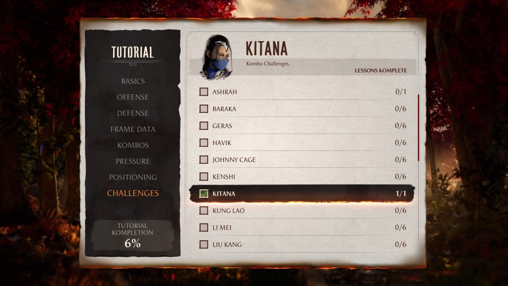 Puisque nous parlons de l’accessibilité, le mode Apprentissage fourni est l’un des plus paresseux qu’il soit. Si Mortal Kombat 1 fait le boulot pour vous aider à appréhender le gameplay d’une manière générale, on rigole pour ce qui est des Challenges pour découvrir les possibilités de combos par personnage. La moyenne des combos proposés se limite à six exemples, et ce dans le meilleur des cas. Pour d’autres, il faudra faire qu’avec un combo uniquement, et très souvent pas du tout représentatif des possibilités d’un combattant, à l’image de Kitana n’ayant qu’un combo trois hits, et sans utilisation d’un personnage Kaméo. Comble de l’humour, certains challenges sont tout simplement buggés, et ce jusque dans le mode Démo censé vous montrer la marche à suivre pour exécuter l’enchaînement, grâce à un CPU. Mention spéciale au pauvre Havik. Il faudra espérer que ce couac soit corrigé au plus vite, si possible pour la sortie officielle du jeu le 19 septembre pour ceux n’ayant pas acheté l’édition Ultimate.