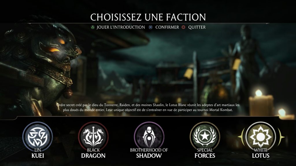 Si Mortal Kombat a bâti sa notoriété sur la cruauté et le sang, il est d’autres traditions que le jeu a su propager au fil de ses titres. En effet, même si ce n’est pas ce que l’on recherche de prime abord dans un jeu de baston, Mortal Kombat a toujours veillé à construire un scénario plus ou moins travaillé pour justifier la présence de tous ces personnages venus d’horizons bien différents juste pour se taper dessus. Ainsi, entre esprit de vengeance, attirances, soif de pouvoir et volonté de protéger la Terre, l’univers s’est étayé au fil des ans. Dans cette nouvelle mouture, les faits font directement suite aux événements de Mortal Kombat (2011) et se déroulent 25 ans après les précédents. Suite à la défaite de Shao Kahn et la mort de nombreux personnages, Shinnok parvient à s’échapper de sa prison pour conquérir le Nether, avec l’aide de Quan Chi et son équipe de Kombattants mort-vivants. Vous retrouverez à ses côtés quelques personnages connus, que vous ne pourrez malheureusement pas jouer mais qui feront ainsi leur apparition dans le scénario. Face à cette menace bien sûr, les défenseurs du Royaume Terre s’uniront pour neutraliser leur ennemis, avec les éternels Raiden, Johnny Cage, Sonya Blade aux commandes. On retrouvera beaucoup d’autres visages – ou grimaces – connus, de Scorpion et Sub-Zero à Kitana et Mileena, en passant par Kung Lao, Liu Kang, j’en passe et des meilleurs. Le titre apporte bien entendu son lot de nouveaux personnages, avec notamment l’arrivée de la “nouvelle génération” qui constitue les Forces Spéciales : Cassie Cage, fille de Johnny et Sonya, Jacqui Briggs, la fille de Jax, Takeda Takahashi le fils de Kenshi et Kung Ji, un parent de Kung Lao. La relève est assurée.