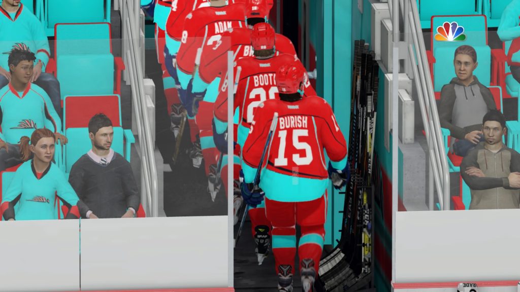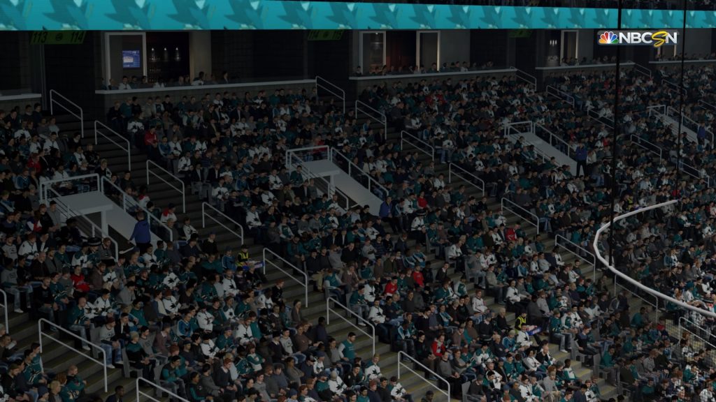 L’une des grosses déceptions est sans aucun doute la mise en scène, aussi bien pour les modes de jeu, mais pas seulement, puisqu’au niveau des matchs c’est pareil. Les présentations d’avant match sont trop courtes et on ne voit ni les joueurs faire leur entrée sur la glace, ni même une présentation de chaque équipe présente. On a bien le plaisir de découvrir des vidéos montrant les villes et leurs stades, mais c’est vraiment trop peu pour masquer la pauvreté de la mise en scène. Durant les parties cela va mieux, les ralentis sont spectaculaires, la foule répond présente, l’ambiance générale est très travaillée et transpire la passion. Chaque stade offre toujours une ambiance différente et les commentateurs officiels de la NBC font le boulot, même si leurs lignes de textes sont la plupart du temps similaires à l’année précédente et qu’il y a quelques répétitions. En fin de match, la déception est de retour vu qu’on à le droit uniquement à trois secondes de joueurs montrant leur joie… et c’est tout. Le pire c’est qu’aucun effort n’a non plus été accompli pour la coupe du monde, aucun hymne, nada, rien à se mettre sous la dent.
