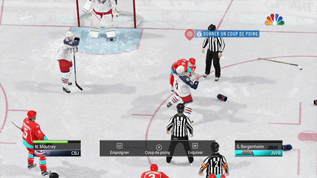 Que ce soit au niveau de l’inertie des patineurs se mouvant sur la glace, ou sur la finesse des animations, des collisions et de la physique du palet, tout est vraiment au poil. Le jeu se veut à la fois exigeant dans ses niveaux de difficultés supérieurs et dès lors que l’on joue en simulation complète, mais aussi accessible si l’on désire une expérience de jeu plus arcade. La gestion de son match se doit d’être parfaite sous peine d’être puni très vite, l’IA se montrant très violente sur les phases offensives dès lors qu’un espace se crée et laisse très peu de place en défense. Les prouesses individuelles sont bien sûr au rendez-vous, mais la force reste le collectif, il faut multiplier les passes, harceler le gardien adverse, défendre compact tout en gardant un œil sur les joueurs excentrés et jouer juste, lever sa crosse au bon moment et faire des mises en échec intelligentes pour casser l’élan adverse. Petite nouveauté de gameplay, une lutte au filet fait son apparition et propose aux joueurs de se la mettre grave pour prendre le dessus sur son adversaire direct aux abords de la ligne de but. Savoir gérer et switcher de stratégies en temps réel revêt une grande importance sur votre défense et votre attaque, il faut alors comprendre à quoi correspond chaque système et l’appliquer au bon moment. En attaque, il ne faut surtout pas tirer comme un sourd sur le gardien, cela amène certes des remises en jeu si ce dernier ne relance pas, mais fatigue vos joueurs par la même occasion. Il faut privilégier le bon type de tirs au moment opportun, se créer des espaces et se mettre dans les meilleures conditions pour marquer le point. Sinon, on peut finir avec trente tirs effectués et à peine un but marqué, les portiers faisant un boulot admirable.