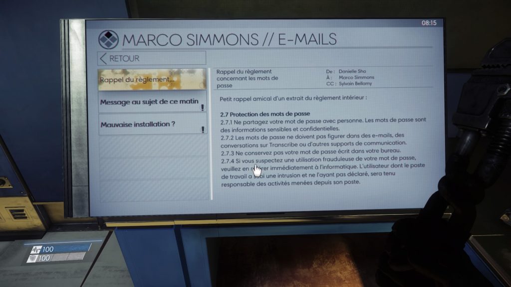 Dans ses mécaniques, Prey n’en reste pas moins un FPS classique mais exigeant. Il faut viser, tirer ou même utiliser ses pouvoirs à la manière d’un Bioshock. Les déplacements de Morgan Yu sont assez lents et cet effet est accentué par la présence d’une jauge d’endurance qui se vide lors des quelques courses ou lorsque nous assénons des coups au corps à corps. Si elle se remplie avec le temps, il faut aussi apprendre à la gérer pour ne pas se retrouver épuisé en plein combat. Heureusement, les capacités de notre héros peuvent être améliorées via plusieurs arbres de compétences. Il faut ramasser et utiliser des Neuromods pour déverrouiller de nouvelles habiletés. Il est alors possible de soulever des objets plus lourd (permettant parfois d’accéder à des zones cachées), d’augmenter sa barre de santé, de réparer des tourelles ou d’optimiser l’utilisation des kits de soin. Plus tard dans l’aventure, des pouvoirs surnaturels seront aussi de la partie. Libre à nous de les utiliser ou non. Car dès le début du jeu, les développeurs de chez Arkane Studios nous confrontent à nos choix, qui peuvent décider de la suite de l’aventure.