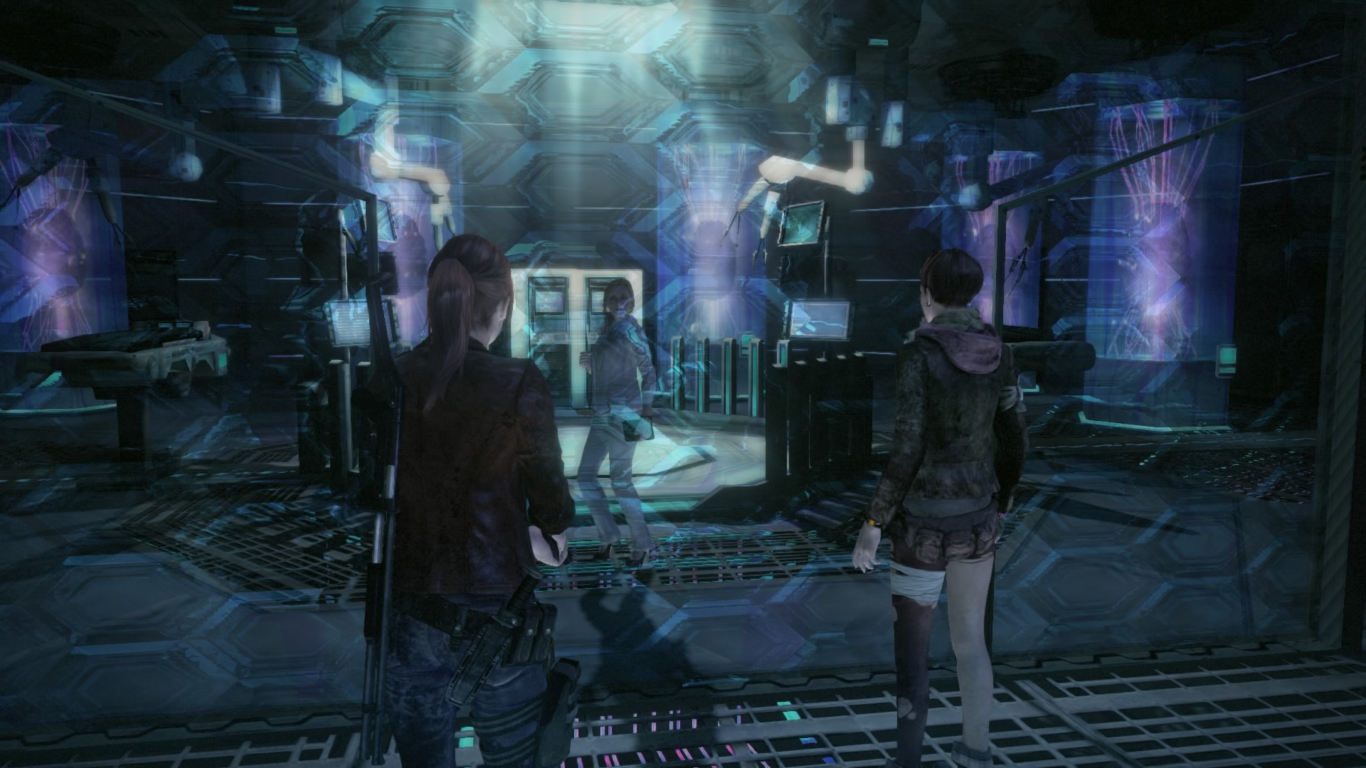 Si l’on considère que la plupart des joueurs qui s’essayeront à Resident Evil Revelations 2 achèteront au moins les 4 épisodes, on obtient une durée de vie plus que respectable, en partie boostée par la grande replay value du soft. Avant tout, il faut savoir que le mode campagne nous a retenu un peu plus de 8 heures au total lors de notre premier run en difficulté normale. Mais les 4 épisodes ne sont que la partie visible de l’iceberg. Une fois joués, vous avez la possibilité de débloquer les modes Chrono et Invisible contre quelques PB. Ces mêmes PB dont on fait l’acquisition tout au long du jeu, par le biais de rubis/saphirs/topazes ou tout simplement en complétant les épisodes et en réussissant des défis. On peut également se procurer divers costumes et armes utilisables en mode campagne ou encore des filtres qui viendront modifier l’écran de jeu. Tout est fait pour pousser le joueur à refaire les épisodes, obtenir les meilleurs temps, les meilleurs scores et surtout… La vraie fin.