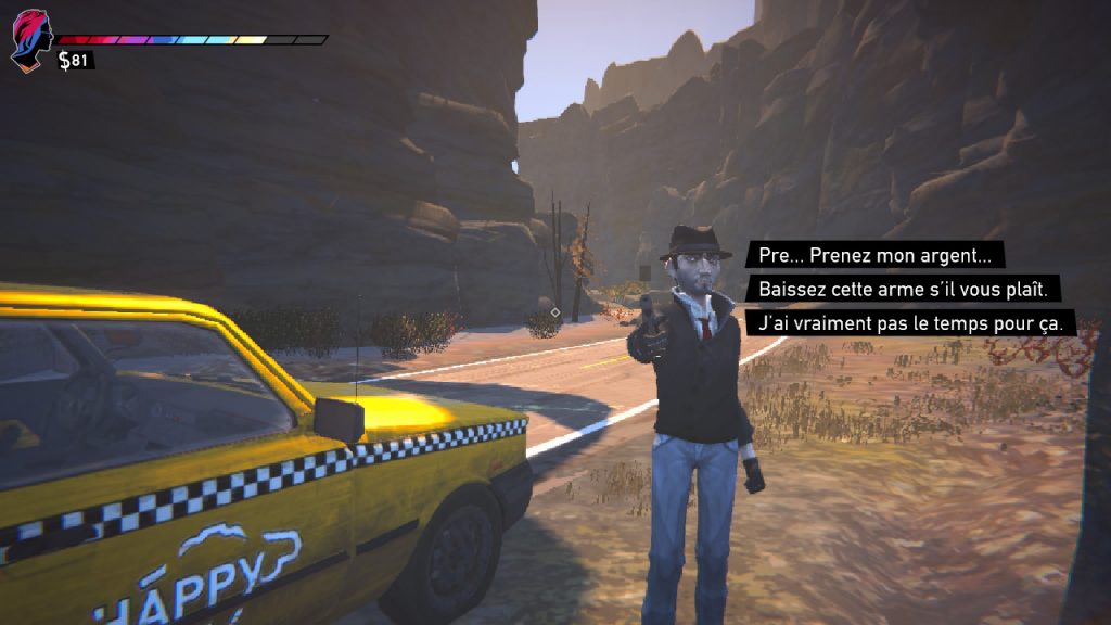 Notez également que votre personnage dispose d’une barre de santé qui est susceptible de baisser si vous ne dormez pas, ne mangez ni ne buvez. Il faudra y faire grandement attention et ainsi dépenser quelques dollars dans certains cas afin de maintenir votre fugitif en vie. Cette dimension un tantinet survie n’est pas déplaisante mais ne marquera pas forcément les esprits, malheureusement. Comprenez qu’elle n’est pas le cœur du gameplay, mais vient juste l’agrémenter pour plus de crédibilité.
