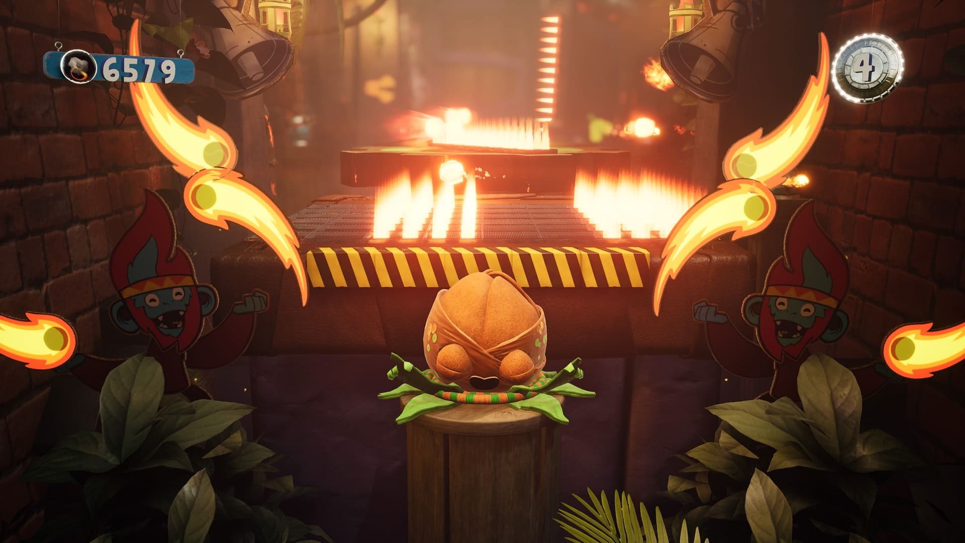 Pour arriver au générique de fin, nous avons mis environ 17 heures, sachant que nous ne nous sommes pas trop pressés lors de notre partie, nous avons tenté d’aller dans tous les coins des niveaux pour récupérer l’ensemble des collectables et que nous avons joué à pas mal de niveaux spécifiques à deux joueurs qui ne sont pas primordiales pour arriver jusqu’au boss final. Concernant la réalisation sonore, Sackboy: A Big Adventure est une véritable réussite avec des thèmes qui collent au poil à l’environnement, avec un grand OUI aux différents niveaux musicaux avec des choix pertinents et bien rythmés (nous pensons notamment au niveau avec le titre Uptown Funk de Mark Ronson & Bruno Mars). Cette inspiration ne rappellera pas sans mal une nouvelle fois la référence incontestée Rayman Legends.