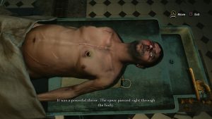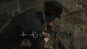 Le coeur de la dernière itération en date de la série reste bien entendu la passion de base de Sherlock, à savoir les divers meurtres et disparitions. En vue à la troisième ou première personne, les phases de gameplay démarrent en général par une recherche d’indices pouvant faire avancer l’enquête, comme une lettre cachée ou déchirée. Grâce à sa déduction infaillible (sorte de sixième sens), notre protagoniste arrive à déceler les moindres traces de pas ou de fissures sur un mur. À l’aide de vielles méthodes et de composants chimiques, aucun secret ne peut se dresser devant lui bien longtemps. Et il en est de même pour les personnages, pouvant être analysés de la tête aux pieds façon Benedict Cumberbatch dans la série TV. Cette action, introduite dans Crimes & Punishments, se veut plus poussée puisque c’est au joueur de choisir sa déduction dans certains cas. Comprenez qu’un portrait peut être désormais incomplet, fournissant donc moins d’indices que prévu dans son carnet de notes.