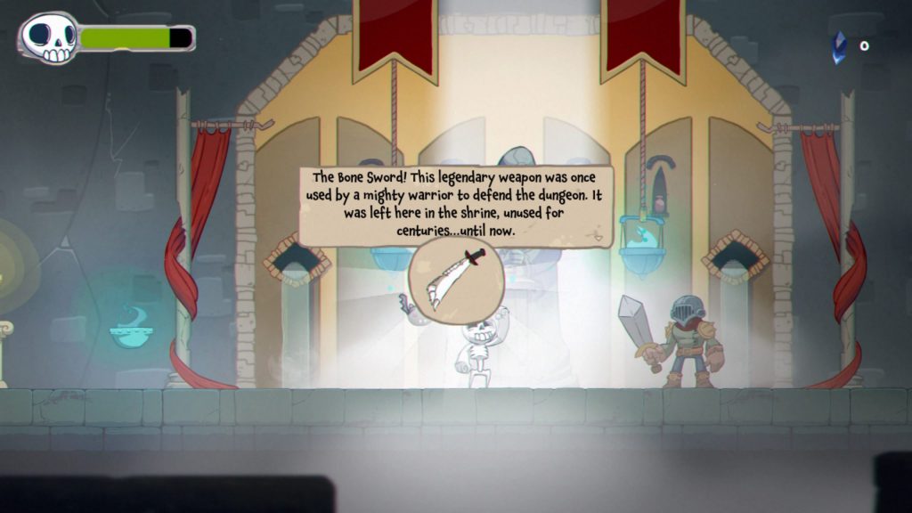 Dès le lancement du jeu, un écran titre nous indique que Skelattack se veut être une proposition de renouveau quant au genre dungeon crawler. Et c’est un tantinet le cas tant il ne reprend pas les codes habituels de ce type de jeu, notamment la vue à la première personne ou les combats au tour par tour. On retrouve tout de même l’idée d’exploration de niveaux quelques peu labyrinthiques, avec des passages et chemins cachés, qui pimentent un tant soit peu notre exploration et l’aventure plus généralement. Pour le reste, cela s’arrête là : Skelattack se veut davantage être un action-platformer en réalité. L’aventure se dessine sur 6 niveaux à l’ambiance tout à fait différente pour chacun d’entre eux, et on se plaît nettement à les explorer pendant quelques heures. Pour autant, il est relativement rapide de boucler Skelattack, il convient de le savoir. La durée de vie étant assez convenable pour son prix, soit 19.99 euros environ.