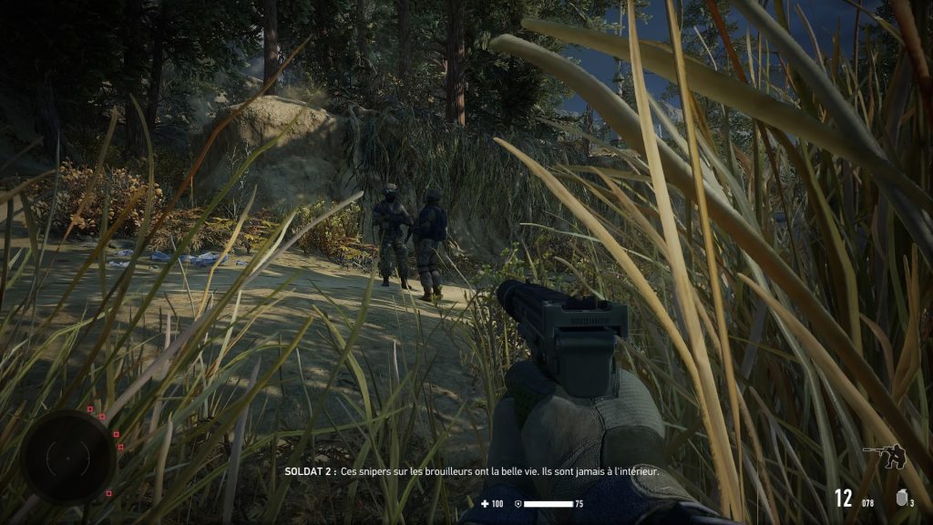 Si le jeu semble relativement stable sur PC, les choses sont un poil plus compliquées sur PS4 classique. Le titre est miné de ralentissements. Loin de rendre Sniper: Ghost Warrior – Contracts 2 injouable, ils peuvent se montrer agaçants et nous sortir de l’immersion. Les temps de chargement sont également interminables avec l’impossibilité de passer les briefings avant d’entrer dans une région. On comprend mieux pourquoi par la suite, ces briefings faisaient office de cache misère pour masquer une barre de chargement qui se remplie en arrière-plan. Afin de conclure sur une note positive, bien que la présence du doublage VF soit passée à la trappe depuis Sniper: Ghost Warrior – Contracts, la version anglaise s’avère être de bonne facture et convaincante. Les dialogues résidant principalement entre Raven et son supérieur hiérarchique.