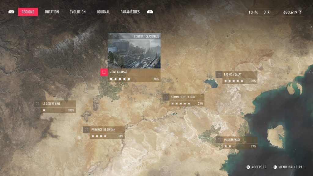 Au revoir Seeker et bonjour Raven, notre nouvel agent pour ce Sniper: Ghost Warrior – Contracts 2. Nous quittons également le froid sibérien pour les zones arides de la frontière entre la Syrie et le Liban. Tout comme pour son aîné, le scénario, bien que présent, s’avère beaucoup plus en retrait et sert plus de prétexte pour justifier la présence de Raven dans la région. La finalité de cette dernière est de faire tomber les têtes derrière le régime tyrannique de Bibi Rashida et sa tentative d’invasion d’un pays limitrophe. Tout comme dans son prédécesseur, tout ceci se tiendra sur cinq zones à nettoyer, pour un total de vingt objectifs à remplir allant de l’assassinat au sabotage d’installations. Certains objectifs additionnels viendront se greffer à la liste lorsque vous vous approchez de ces derniers. Vous l’aurez compris, Sniper: Ghost Warrior – Contracts 2 conserve les bases du premier opus. On y retrouve un arbre de compétences séparé en quatre sections, dans lequel vous pourrez améliorer l’équipement et gadgets de Raven grâces aux Tokens débloqués au fur et à mesure de votre progression. L’argent des contrats, quant à lui, vous permettra d’acheter ou d’améliorer votre arsenal afin de retenter les missions avec des armes toujours plus destructrices et silencieuses par la suite. Car oui, contrairement à la série canonique, les épisodes « Contracts » s’orientent beaucoup plus sur une multitude de challenges à résoudre, ce qui devrait devrait ravir les amateurs de scoring.