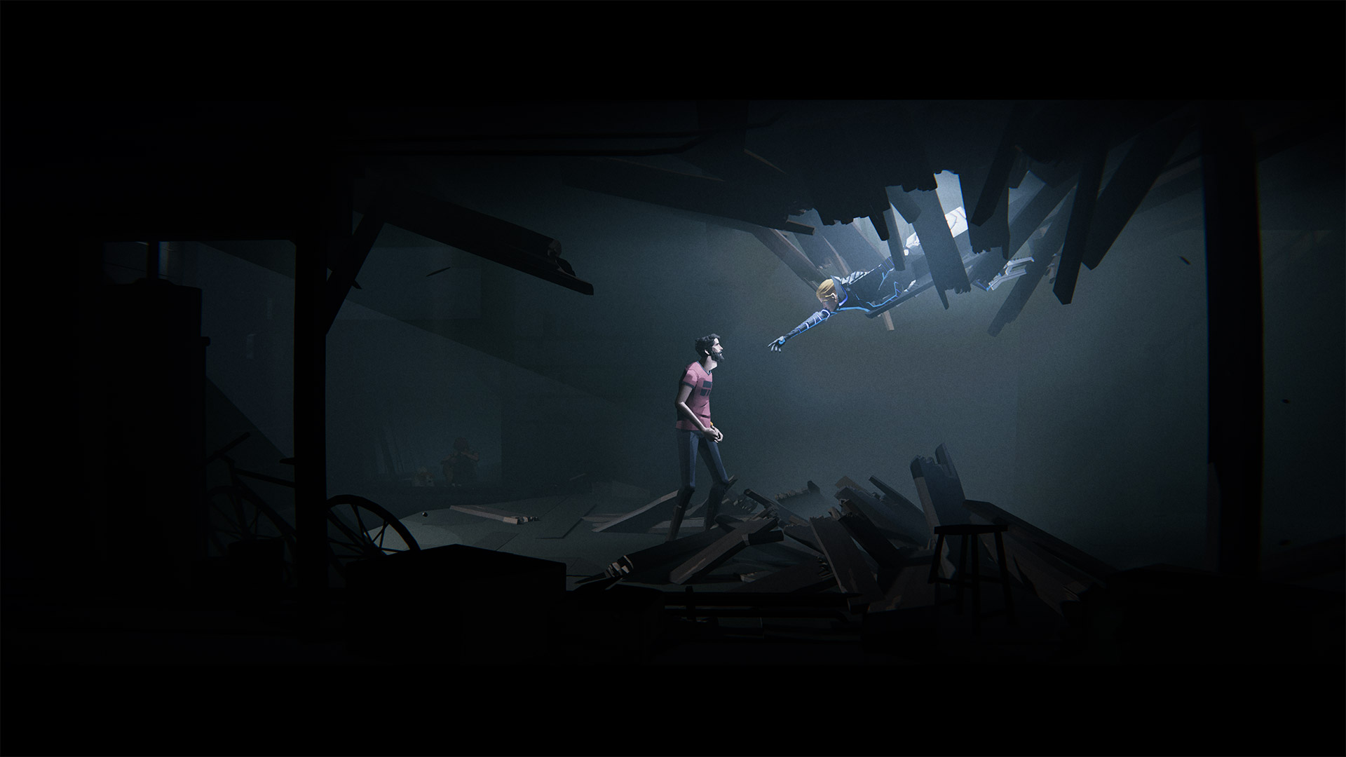 Même si l’aventure de Somerville nous fait évoluer dans un environnement très linéaire au champ d’action limité, les environnements dans lesquels nous évoluons parfois, coupent le souffle. Malgré une atmosphère très oppressante, le jeu ne fait pas peur pour autant et peut-être confié aux joueurs les moins téméraires. À notre grande surprise, le jeu ne possède aucun dialogue et il ne nous aiguille que très peu sur les actions à réaliser. Tout est donc soumis à l’interprétation du joueur. Au fil de l’eau, celui-ci est témoin de différentes scènes qui lui permettent de mieux comprendre les capacités des ennemis. Un enfant qui disparaît dans un rayon de lumière, des fuyards qui, dans un vacarme fracassant, alertent et attirent les ennemis, etc. Pour les plus attentifs, quelques secrets et collectables sont dissimulés ici et là dans les niveaux. Bien que Somerville ne possède pas de dialogues, il est limpide dans les messages qu’il cherche à transmettre grâce notamment à une mise en scène et à des plans de caméra qui renforcent grandement le sentiment d’immersion. Certains l’auront déjà remarqué mais le jeu emprunte subtilement de nombreux codes au cinéma pour accentuer la narration. En effet, le jeu est retranscrit au format cinémascope qui est le format utilisé par les pellicules du grand écran et qui possède une image plus large que haute, d’où les bandelettes noires en bas et en haut de l’écran. Sans oublier que l’histoire de Somerville rappelle facilement celle de La Guerre des Mondes de Spielberg. De plus, à la manière d’un plan séquence, la caméra suit le personnage à travers tous ses environnements, avec de rares transitions et alternant aisément entre les plans larges et les plans plus restreints comme en témoignent les captures ci-dessous. Avec une texture lissée, lowpoly et des couleurs qui semblent avoir été étalonnées, l’atmosphère a été rigoureusement travaillée pour maximiser les sensations manette en main et malgré quelques bugs relatifs à l’accès anticipé qui seront sans aucun doute corrigés à sa sortie, pour nous une chose est sûre, du côté de l’immersion c’est réussi.