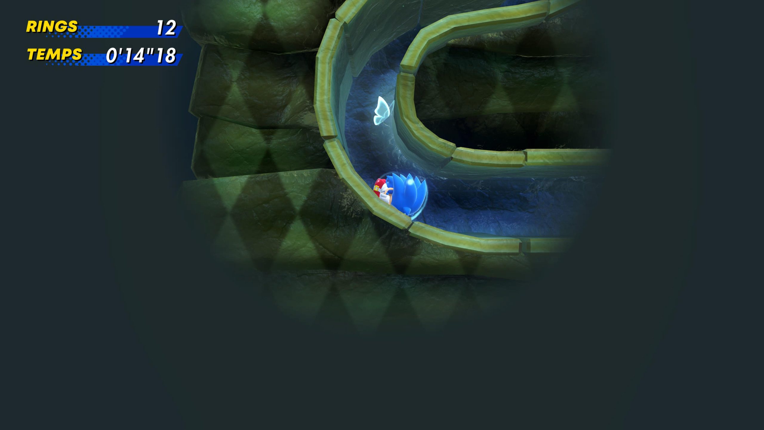 En parlant de niveaux bonus, en marge de ceux qui permettent d’obtenir une émeraude du Chaos, on notera la présence de stages spéciaux, qui apparaissent par le biais de passages dimensionnels à chaque checkpoint passé avec plus de 50 rings en sa possession. Ici, point d’émeraude à récolter, mais des médailles, qui serviront à débloquer des éléments dans le mode Combat. On pourra également en récupérer certaines directement dans chaque stage, mais elles sont pour la plupart bien cachées. Enfin, obtenir 100 anneaux permet aussi d’en obtenir une.