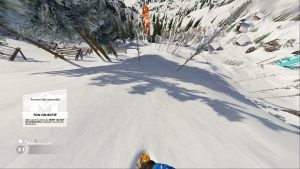 Techniquement, le jeu a bien progressé au fil de l’alpha et de la bêta. S’il subsiste encore quelques bugs et que le clipping (décors qui apparaissent au fur et à mesure) est très important lorsque vous êtes dans les airs, il y a de jolies réalisations. Les traces de pas dans la neige sont plutôt bluffantes et ceux qui ont l’habitude de skier seront certainement étonnés des sensations proches de vraies descentes que procure le jeu. Le mode Go Pro est d’ailleurs un véritable coup de cœur pour des descentes « calmes » avec le bruit du vent, celui des spatules sur la neige et les bâtons de ski qui s’entrechoquent. Il subsiste quelques bugs de collision qui vous font parfois traverser des obstacles mais rien de très méchant. Un système de calcul du nombre de « G » admissibles avant de vous faire chuter est également plutôt opaque et aléatoire. On ne comprend pas toujours pourquoi on mange de la poudreuse après plusieurs sauts enchaînés plutôt correctement alors que vous restez debout sur votre planche en ayant fait un saut de plusieurs dizaines de mètres à côté de ça. Même frustration parfois lorsque vous vous apprêtez à déclencher un saut (touche R2) où le timing pour relâcher la gâchette n’est pas toujours très clair et constant. En cas de réussite, il faudra ensuite utiliser habillement le stick et les gâchettes pour réaliser des combinaisons de tricks et surtout, veiller à retomber dans le sens de la pente. De ce côté là, le système est plutôt intuitif et même si vous êtes forcément un peu gourmand en nombre de tours au début du jeu, vous finissez par évaluer rapidement ce qui pourra passer ou casser.