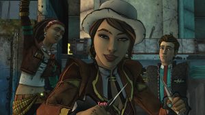 Selon votre choix final lors du dernier épisode, Catch a Ride offre une perspective qu’on a toujours voulue plus poussée dans les jeux de Telltale : un scénario avec de vraies conséquences. Après tout, le studio californien s’est forgé une forte réputation selon laquelle ses histoires sont façonnées d’après le parcours du joueur. Mais lorsqu’on pense, par exemple, au marquant The Walking Dead ou The Wolf Among Us, on se rend compte que leurs multiples choix mènent au final à un chemin assez prédéfini. Un fait qui devrait heureusement, et les connaisseurs le savent, changer avec la prochaine saison 3 de The Walking Dead. En attendant, Tales from the Borderlands montre avec son troisième épisode qu’il est bien possible de vivre deux histoires distinctes dans un seul et même opus. En se basant sur la décision finale d’Atlas Mugged, la narration se concentre en priorité vers un protagoniste précis, là où le parcours global en fera les frais comme le démontrent les développeurs qui conseillent d’entamer deux fois le titre afin d’en observer les différences.