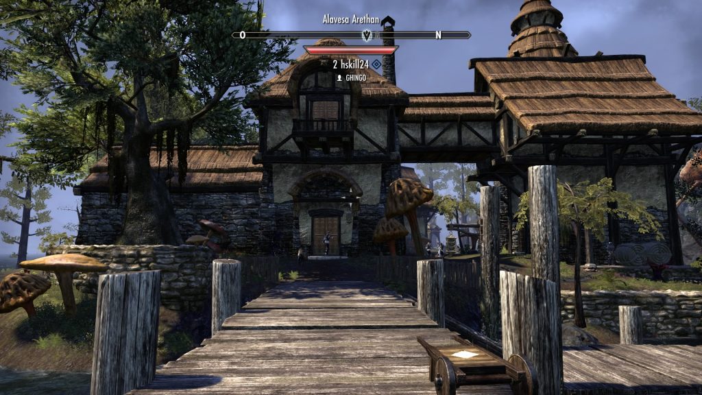 Qui dit MMORPG dit forcément multijoueur. The Elder Scrolls Online: Morrowind introduit des parties à plusieurs rapides, qui se terminent généralement en moins de 15 minutes. Les champs de bataille trop grands et complexes laissent place à des zones beaucoup plus réduites afin de favoriser l’action instantanée. Trois équipes de quatre joueurs peuvent s’affronter à travers des modes classiques comme match à mort par équipe ou encore capture de drapeau. Ces joutes sont très efficaces et nous ne pouvons plus nous cacher ou passer notre temps à chercher un adversaire à dessouder. Cependant, nous sentons tout de même fortement que ce titre massivement multi est en réalité pleinement orienté vers le solo avec des éléments connectés. C’est bien simple, il est possible de tout faire sans se préoccuper des autres joueurs comme dans un Oblivion ou un Skyrim. Cette extension en est un exemple frappant ! Bethesda et Zenimax Online ont voulu clairement s’adresser aux fans éternels de la franchise, qui adorent se balader durant des centaines d’heures tout en explorant des grottes et autres donjons, le tout en améliorant leur avatar selon leurs préférences. Les équipes de développement ont alors fait le pari (risqué) d’orienter leur jeu vers un RPG pur avec une pointe de multijoueur pour celles et ceux qui le désirent. Il faut le reconnaître, la réussite est bien présente.