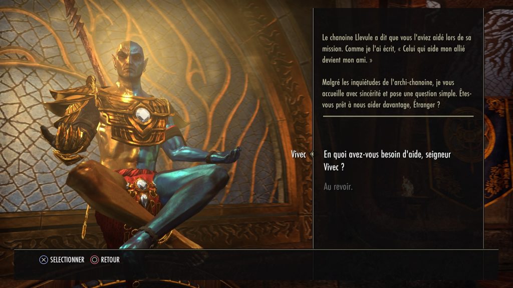 Ce DLC peut très bien s’entamer dès que vous lancez le jeu de base pour la première fois ou bien avec un personnage déjà existant. Nous nous rendons donc sur l’île de Vvardenfell, dans la province de Morrowind. Ce terrain de jeu ne nous est pas inconnu puisqu’il s’agit de celui de The Elder Scrolls III: Morrowind. Beaucoup de choses y sont différentes puisque que nous ne sommes pas à la même époque que celle de l’opus sorti en 2002. L’histoire nous portera jusqu’à la grande cité de Vivec, dans laquelle réside le dieu vivant du même nom. Hélas, ce dernier perd petit à petit ses pouvoirs, ce qui entraînera une série de catastrophes s’il n’est pas restauré. Vous l’aurez compris, nous devrons parcourir la région en accomplissant de nombreuses quêtes afin d’atteindre notre objectif. Comme d’habitude, le tout est jouable en solo, avec la possibilité de s’allier à d’autres joueurs que nous croiserons durant notre aventure. Et parfois, certains affrontements mettront nos capacités à rude épreuve, alors une alliance ne sera pas de trop. Quoiqu’il en soit, un bon nombre de missions s’ouvrent à nous sur ces terres volcaniques, même si elles ne sont pas toutes des plus prenantes.